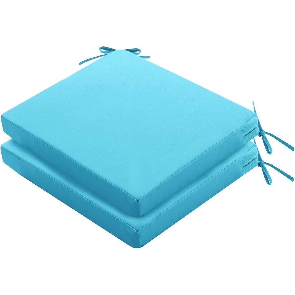 Waterproof & Fade Resistant Outdoor Chair Cushions Set of 2 with Ties and Hidden Zipper, 19 x 19 x 2 Inch, Teal