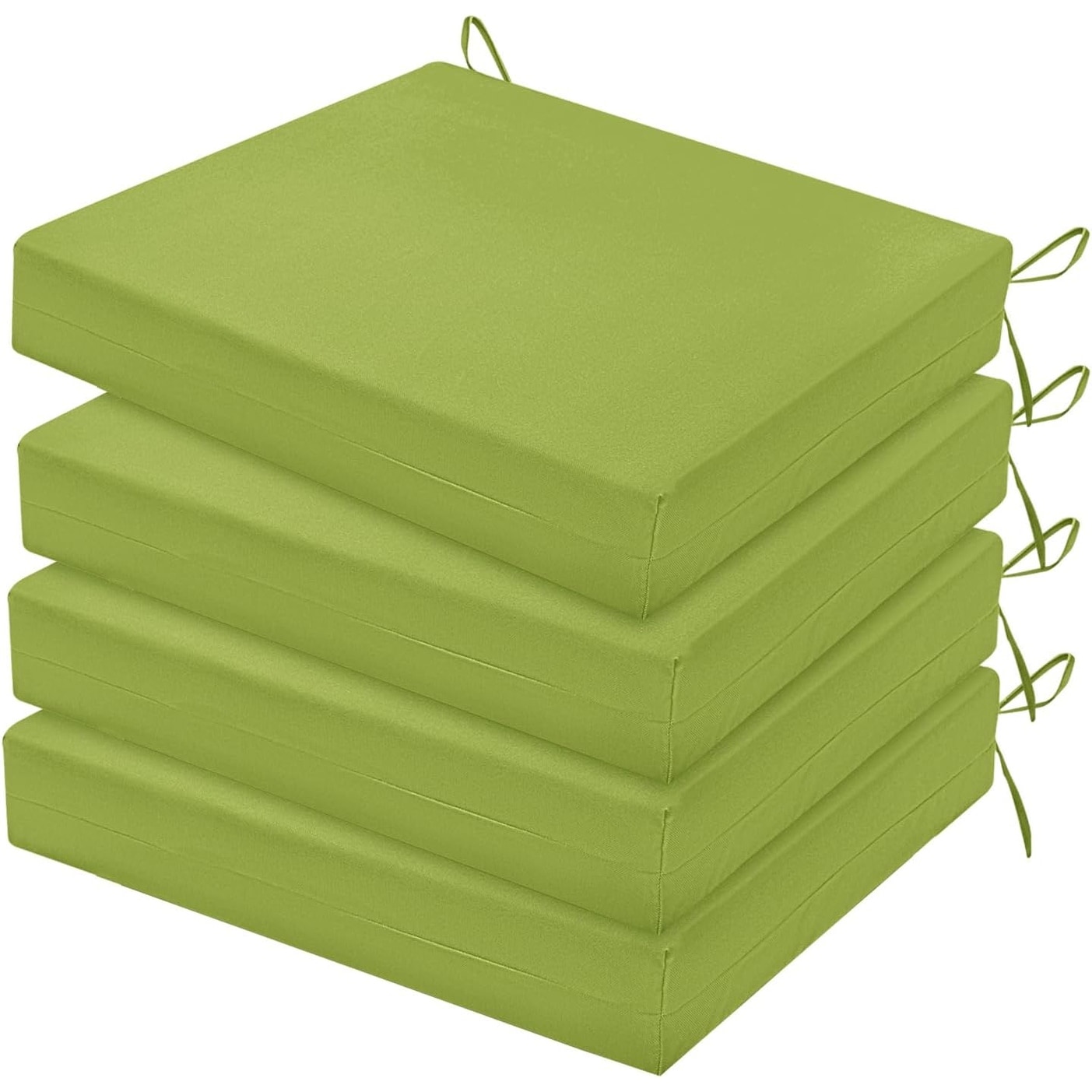 Set of 4 Water Resistant Outdoor Chair Cushions with Ties, 18.5x16x3 Inch, Grass Green