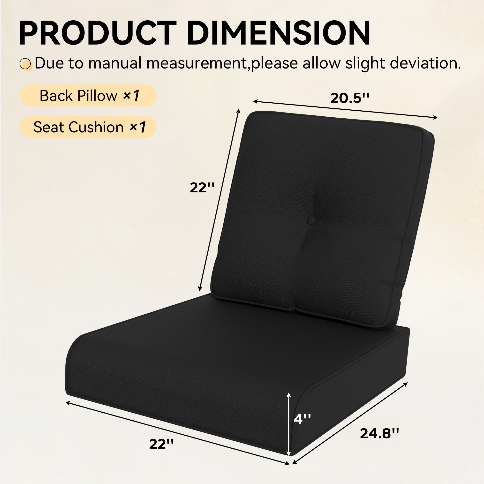 COZYWOR Outdoor Deep Seating Cushion With Olefin Fabric,Black