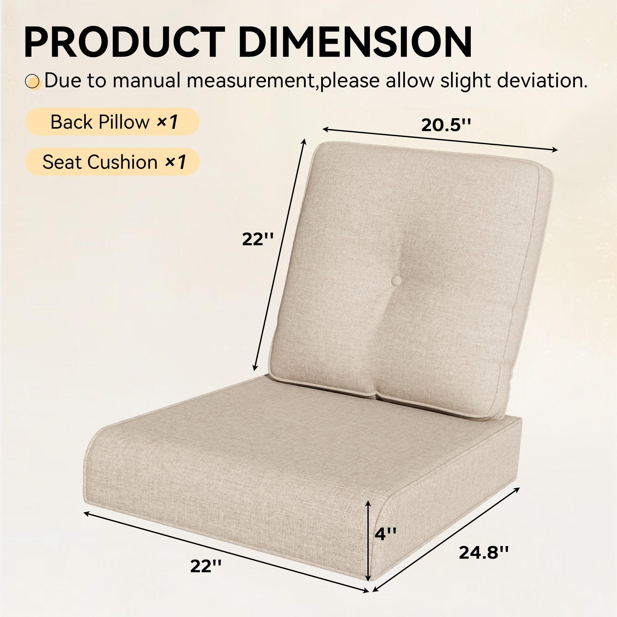 Pellebant 22 x 21 x 3.5 in Patio Deep Seat Chair Outdoor Cushion Set