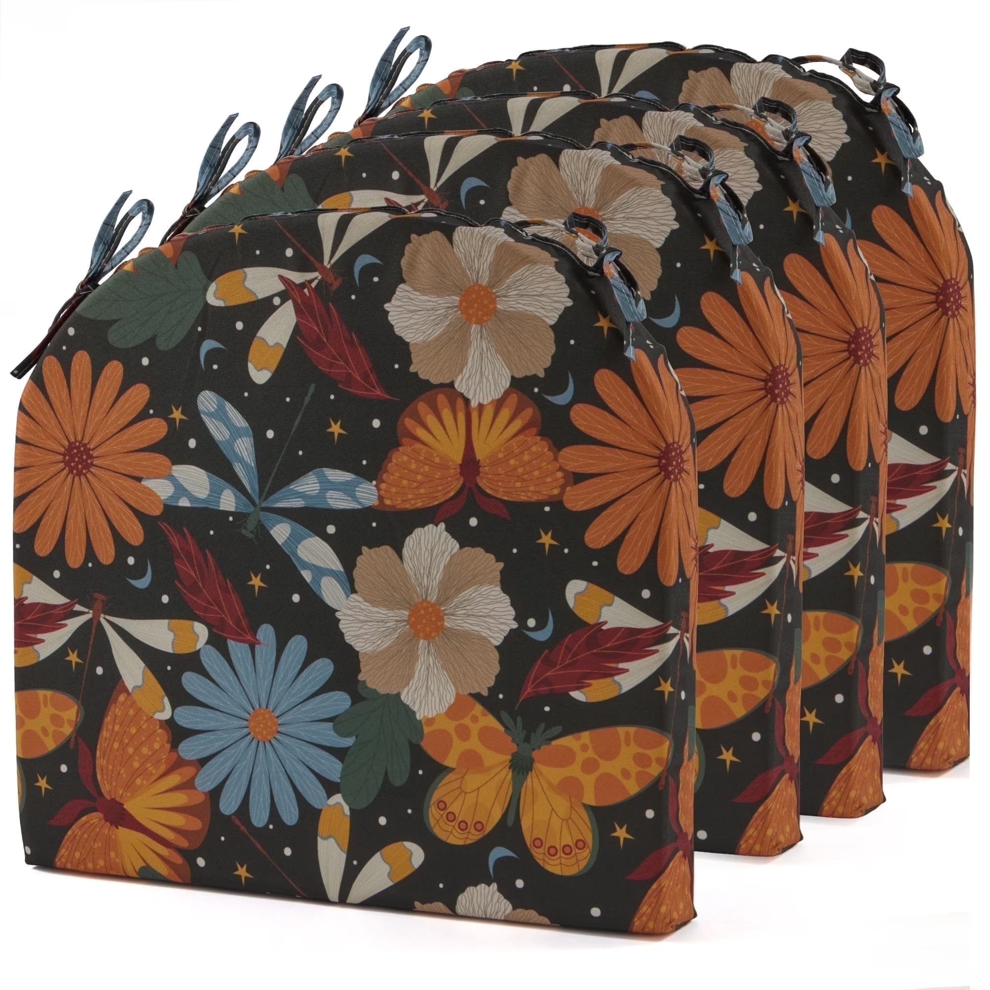 Set of 4 Waterproof Outdoor Chair Cushions with Ties for Patio Furniture