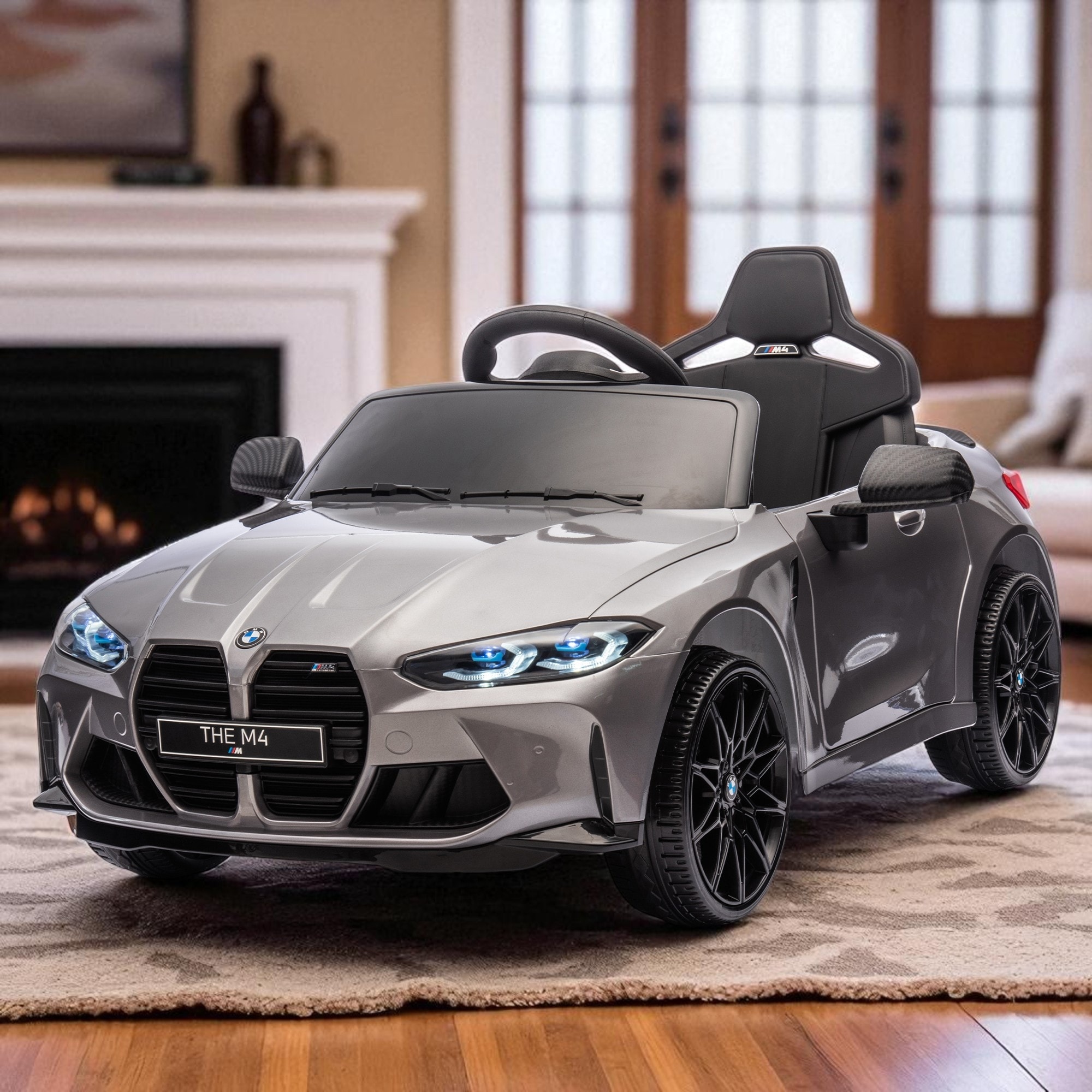 BMW M4 24V Kids Ride On Car with Remote Control, 3-Speed, Bluetooth, USB/MP3, LED Lights, Story Mode & Pull Handle Design