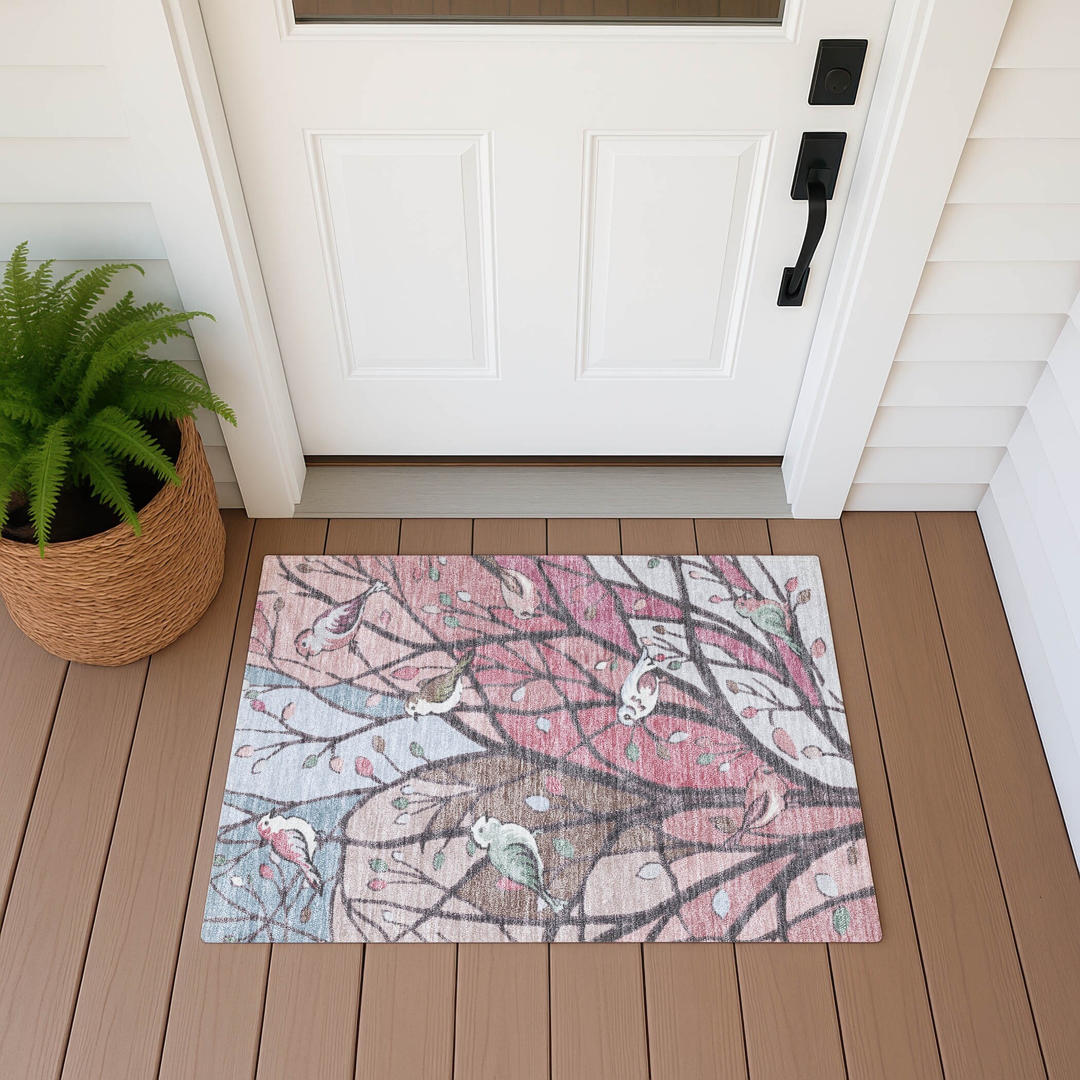 Machine Washable Indoor/ Outdoor Bird Mosaic Chantille Rug