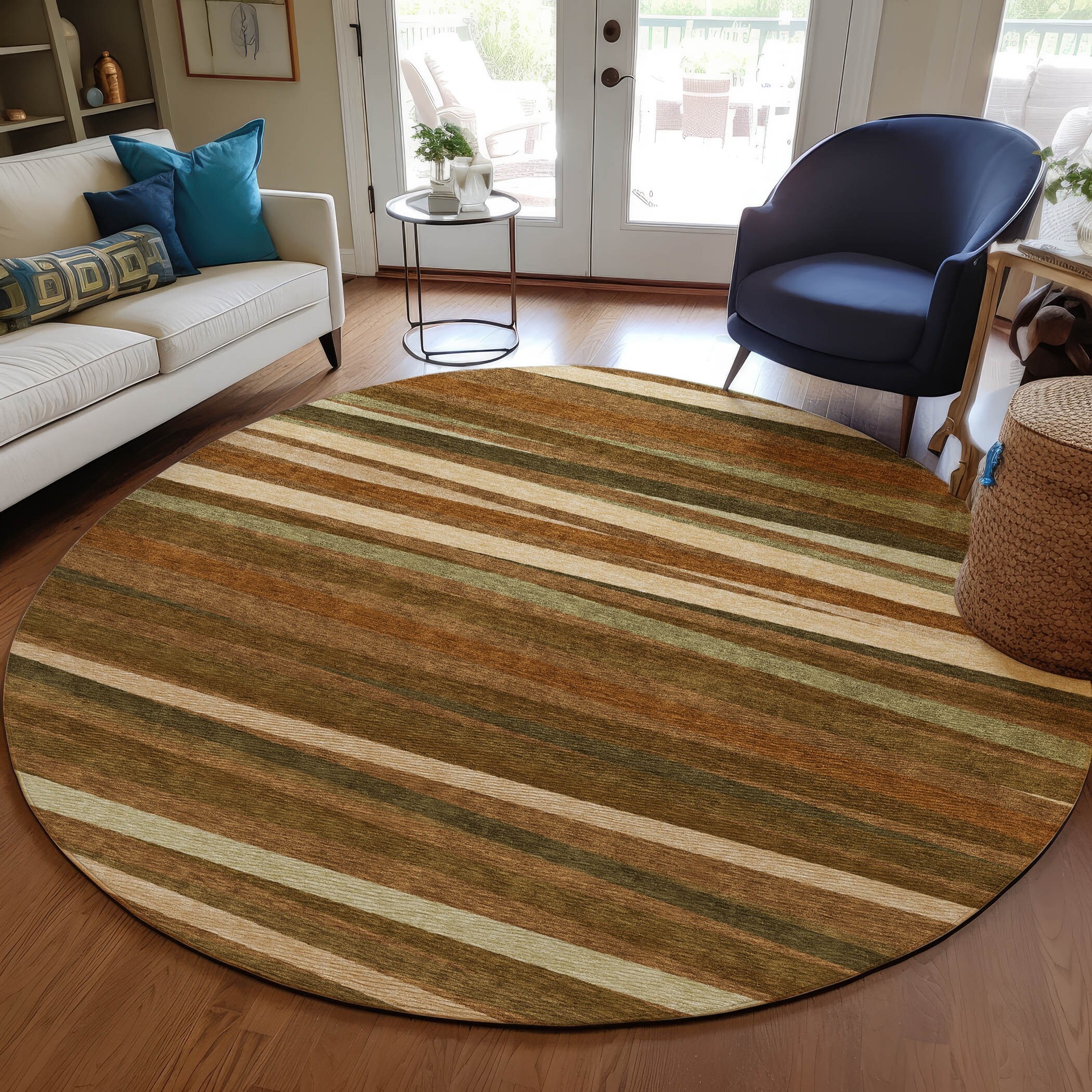 Machine Washable Indoor/ Outdoor Modern Stripes Chantille Rug