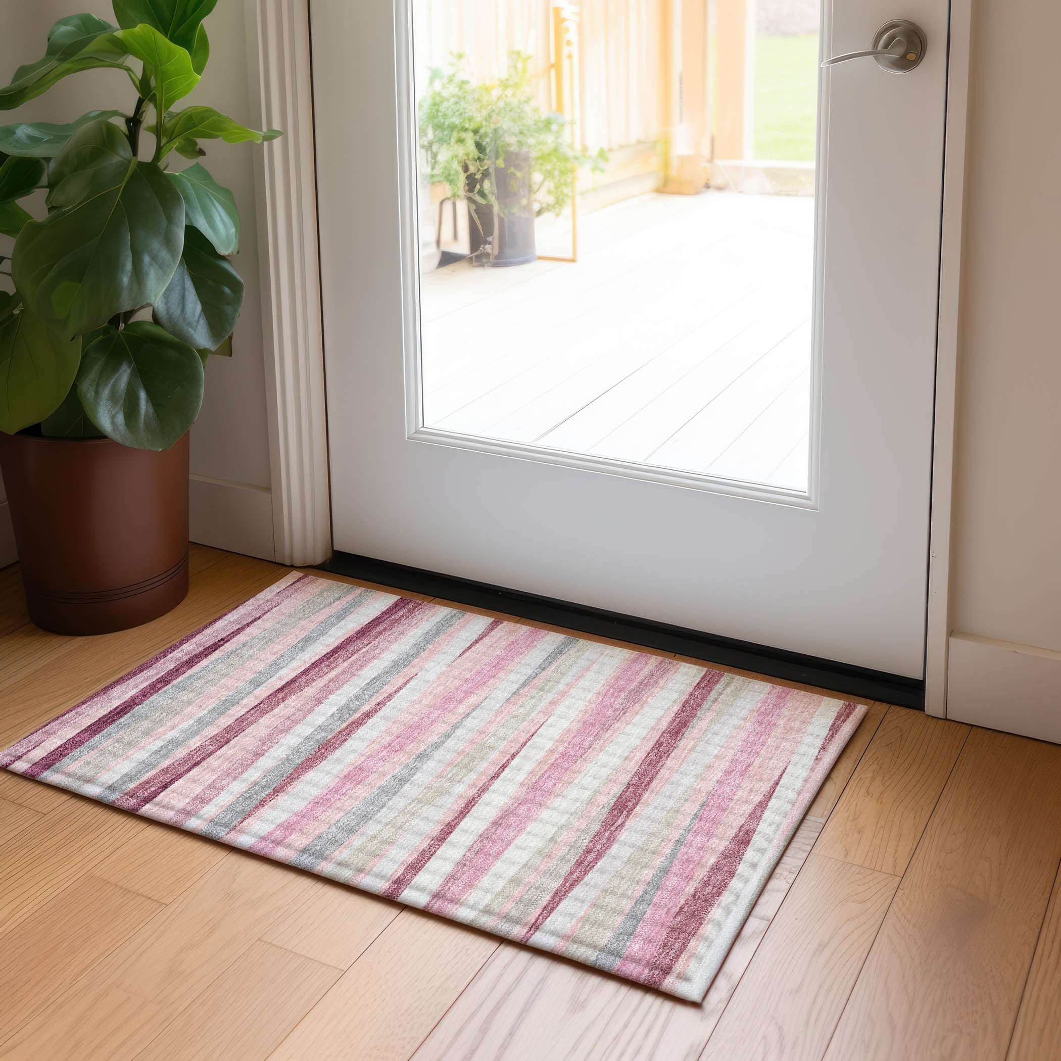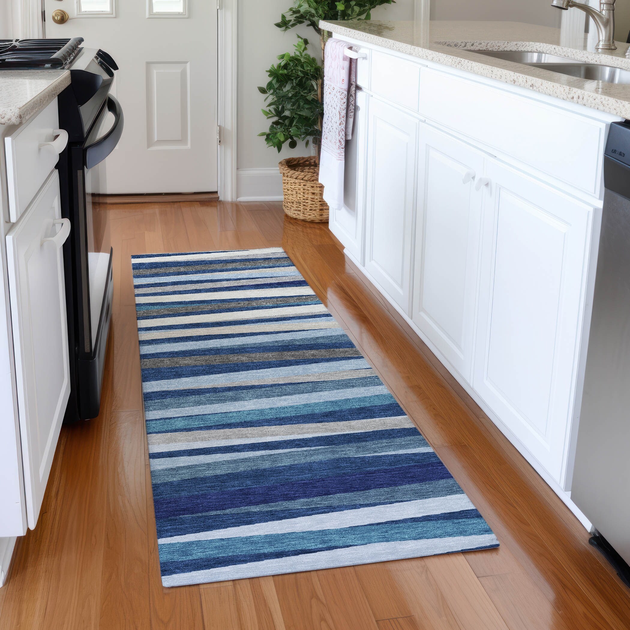 Machine Washable Indoor/ Outdoor Modern Stripes Chantille Rug