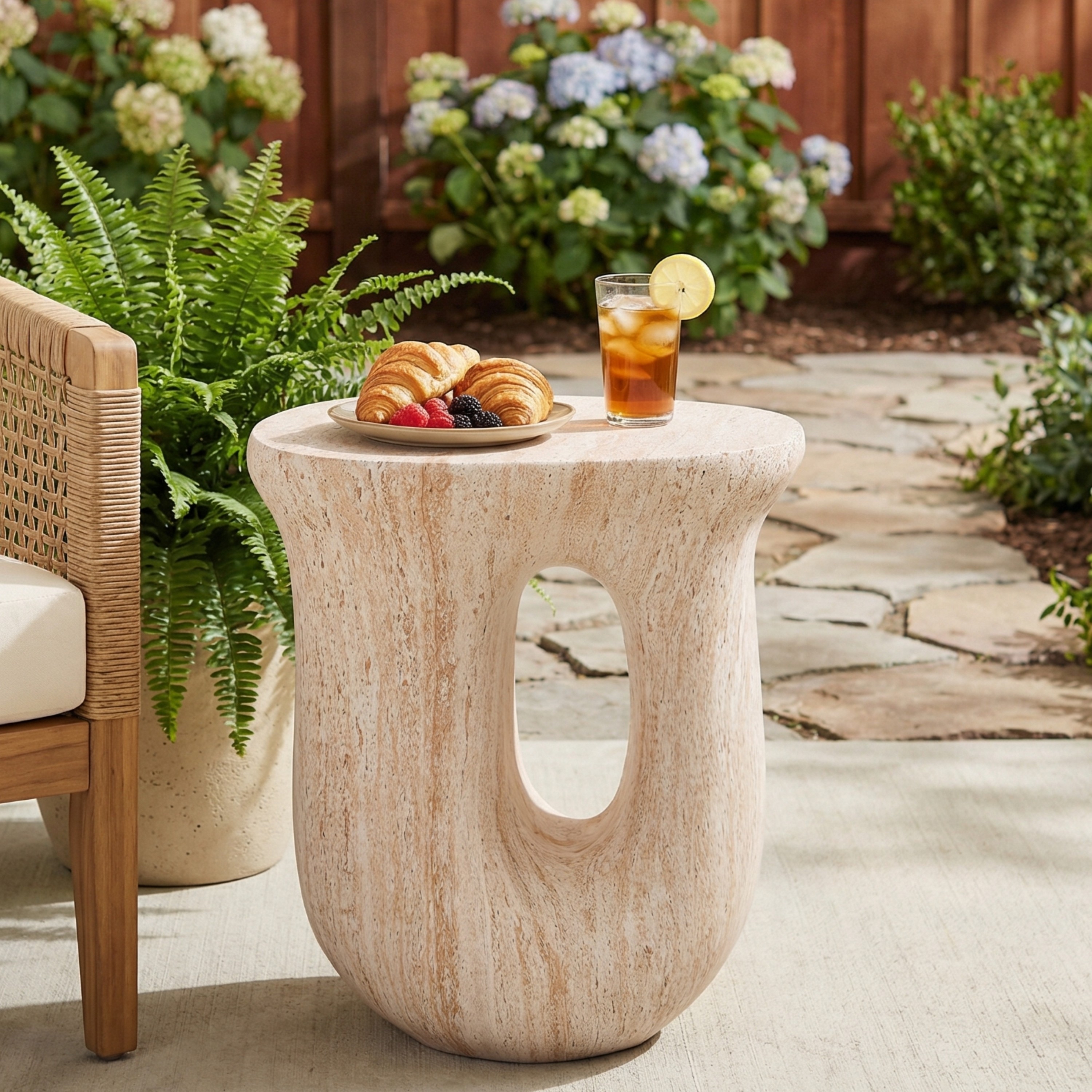 Outdoor Indoor Lightweight Concrete Side Table, Travertine Finish - 17.77