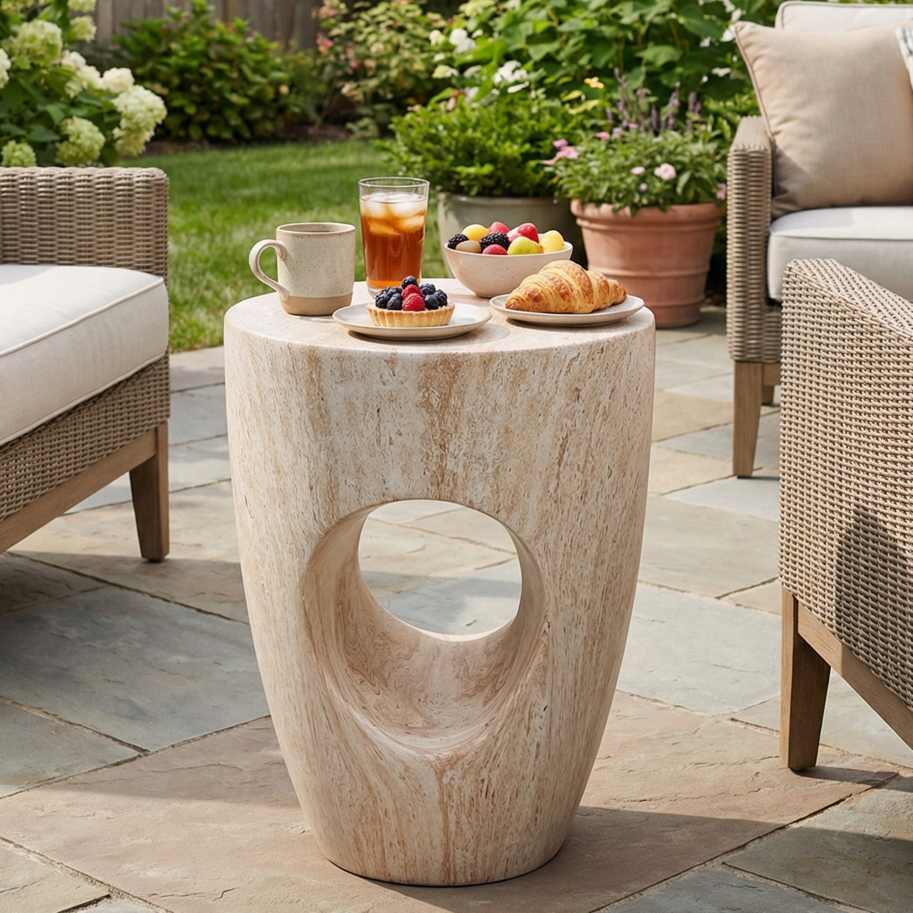 Stylish 19.6" H End Table Adding a Touch of Modern Charm to Your Porch, Patio, Decorative Concrete Side Table for Living Room