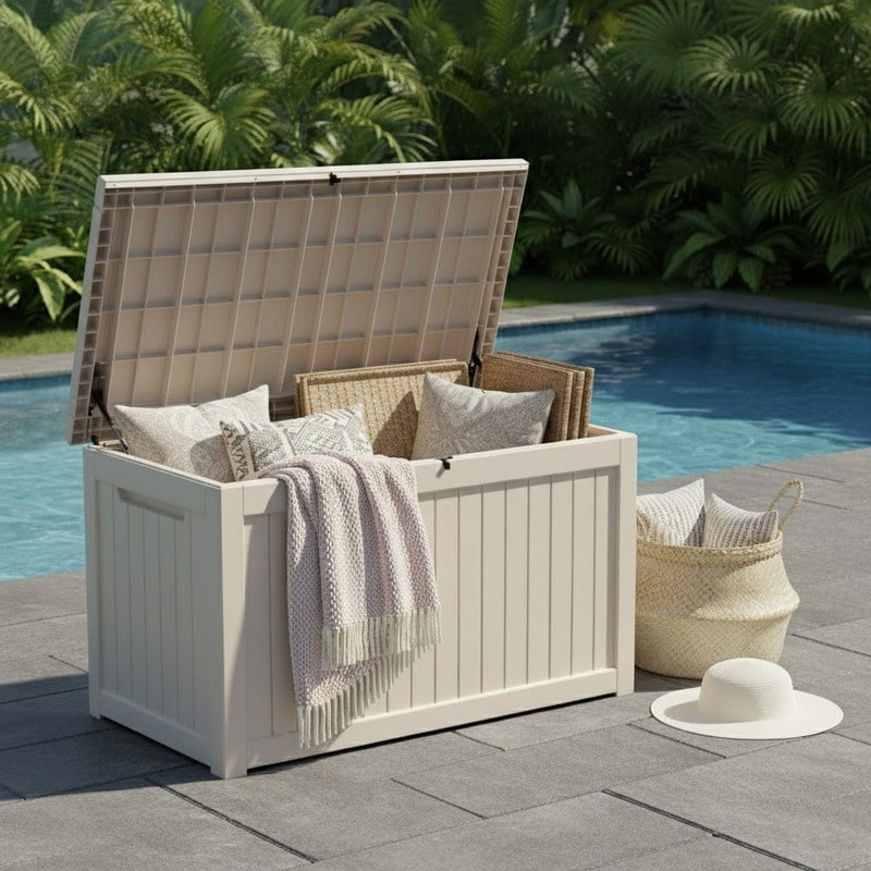 85 Gallon Large Resin Deck Box Waterproof Outdoor Storage with Padlock Indoor Outdoor Organization and Storage Container