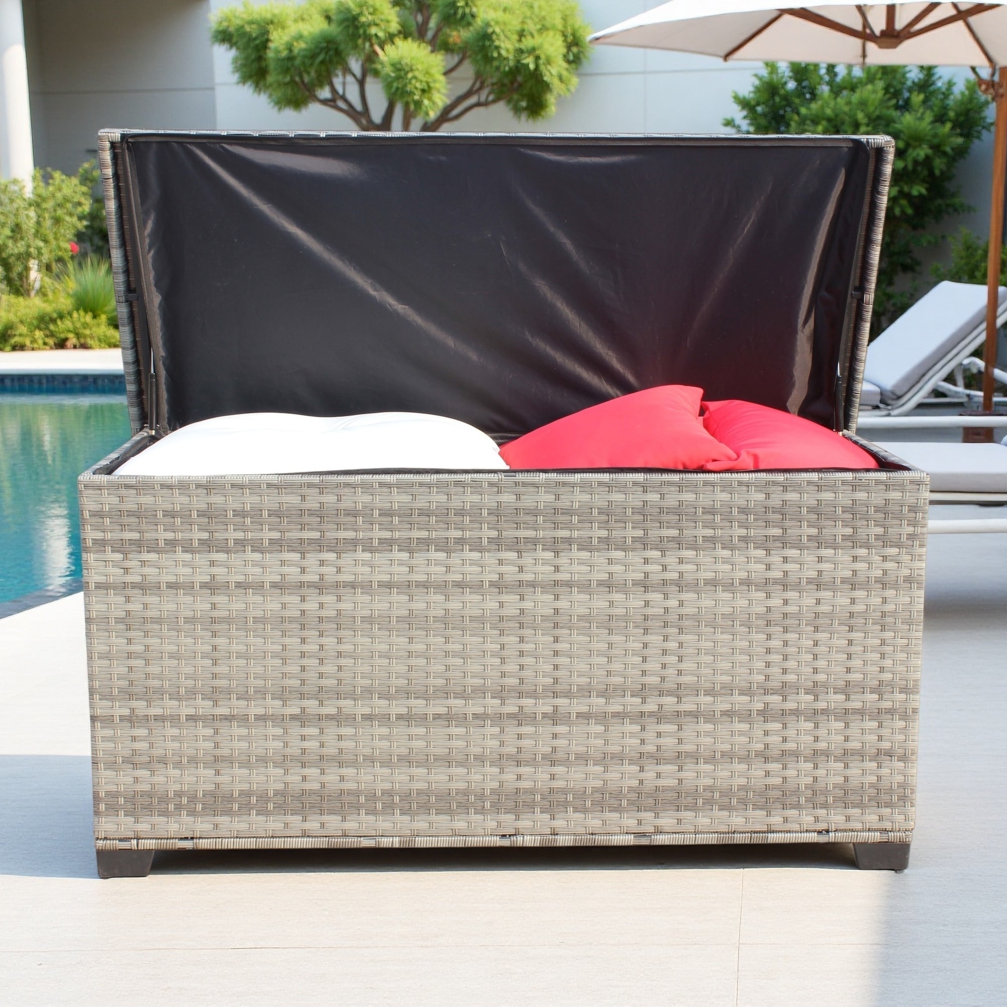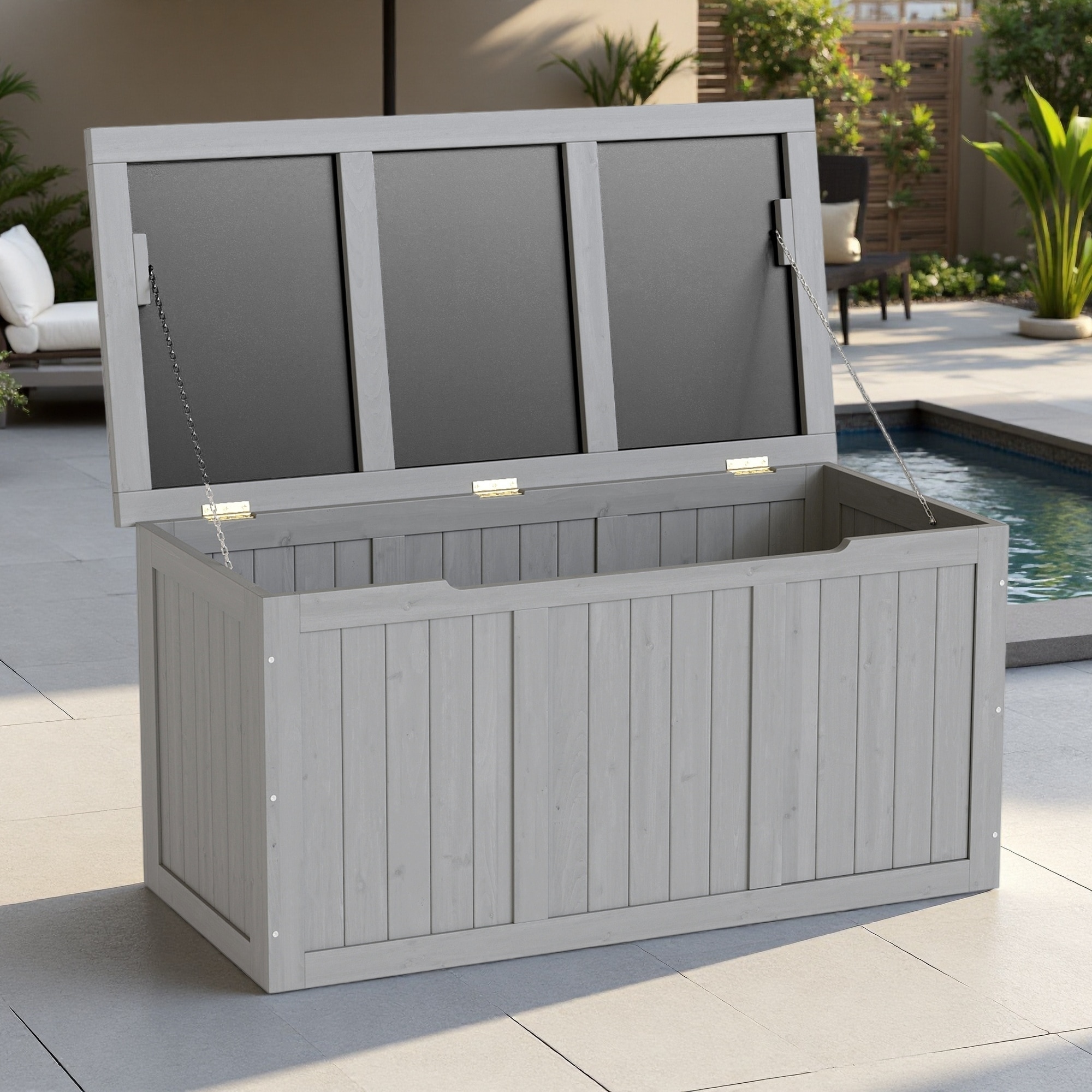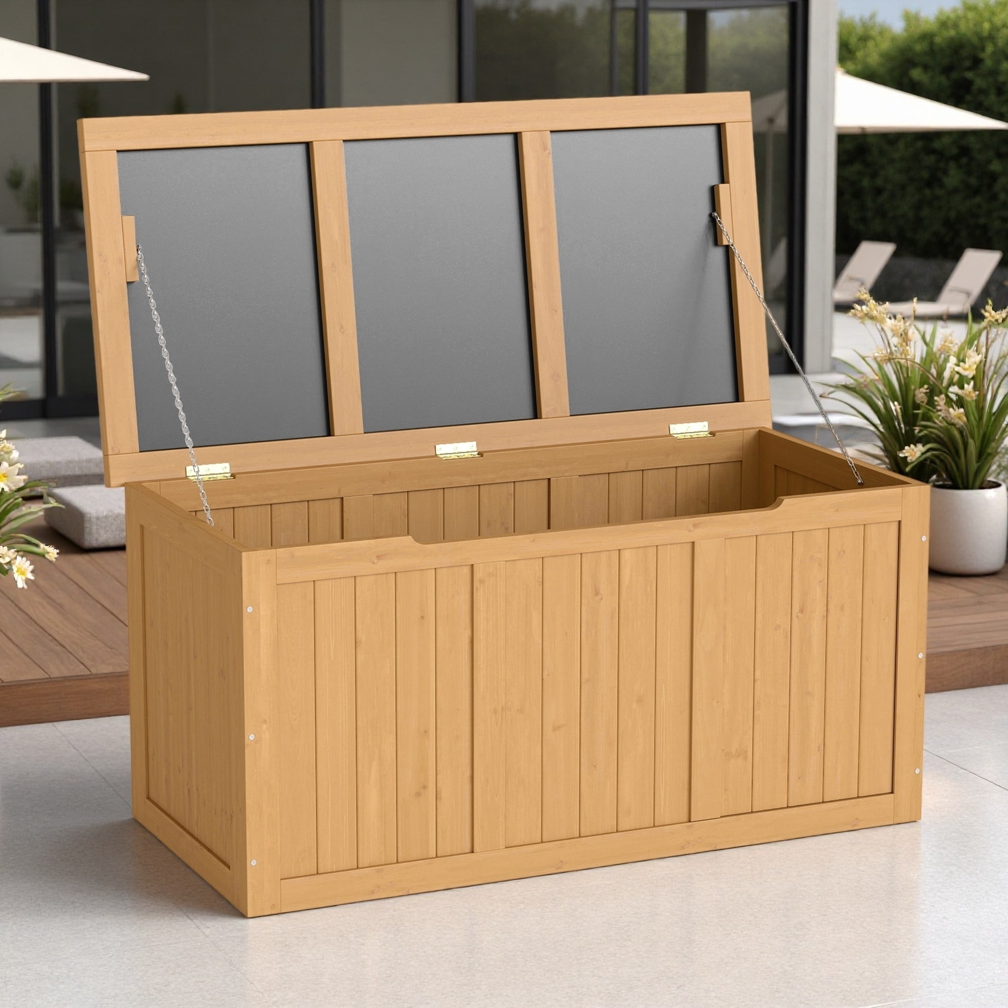Outdoor Wooden Storage Box with a Hinged Lid for Patio Furniture Cushions, Pool Toys and Garden Tools