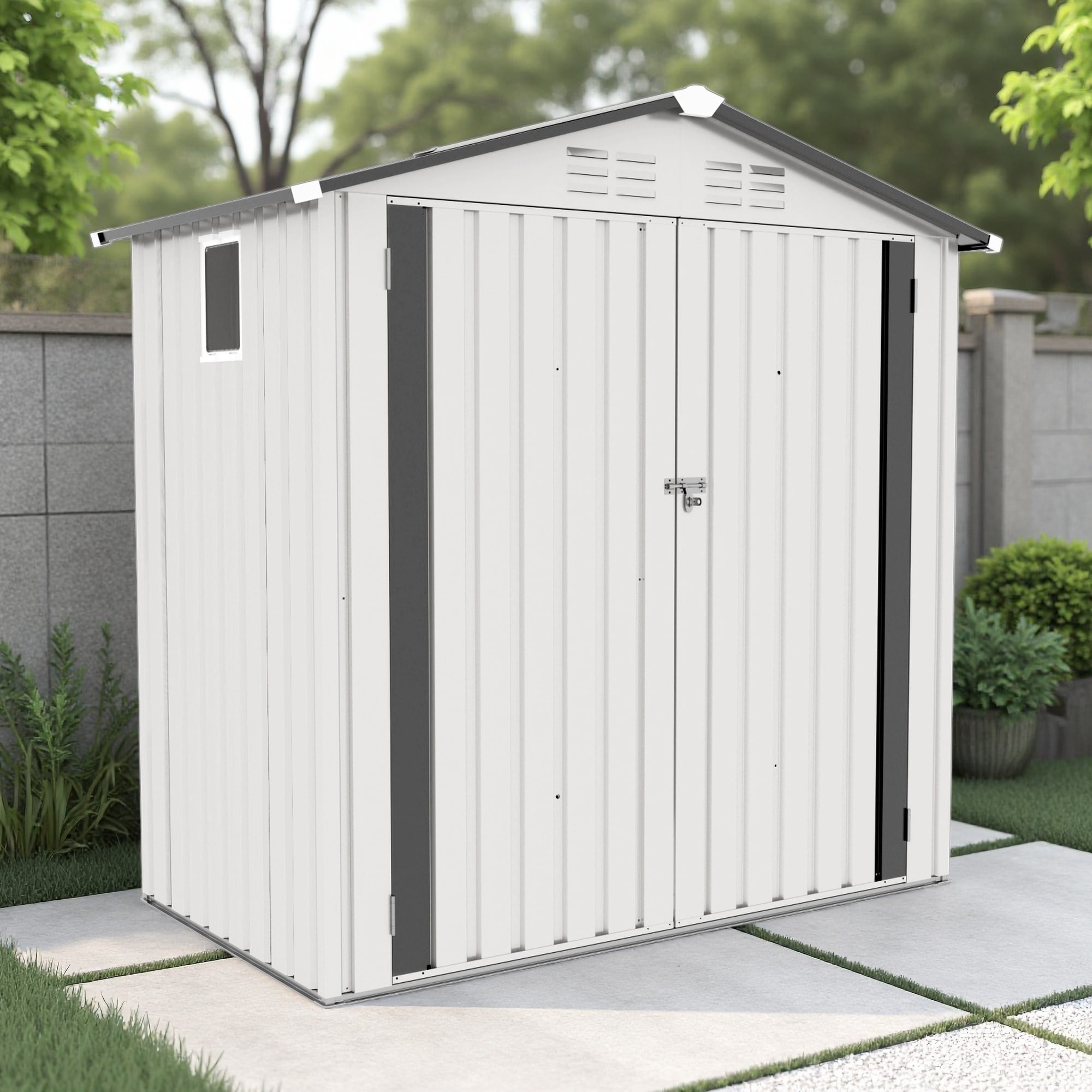Outdoor Metal Storage Shed with Peaked Roof, Clear Window and Lockable Door