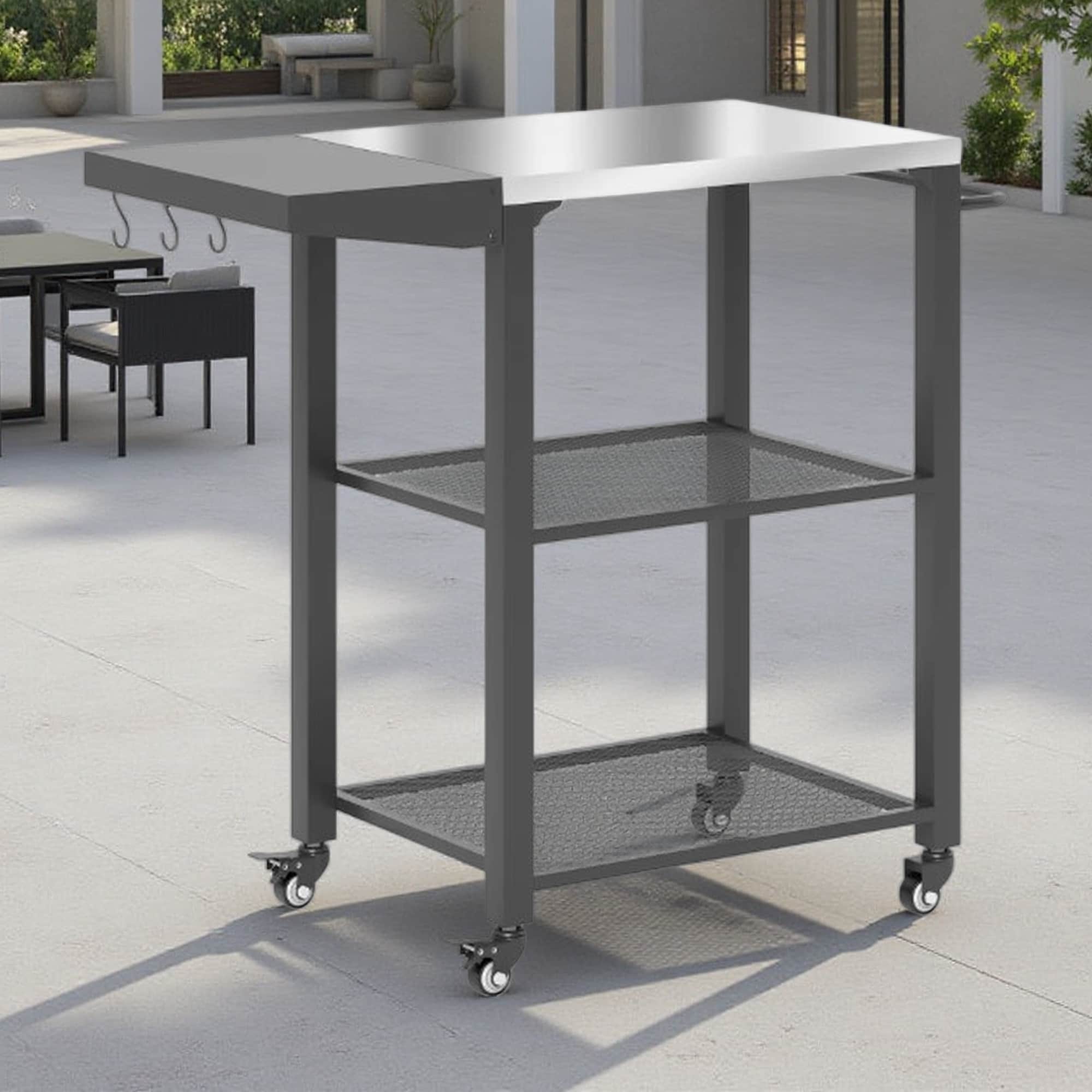 Three-Shelf Outdoor Grill Cart with Hooks and Foldable Side Table
