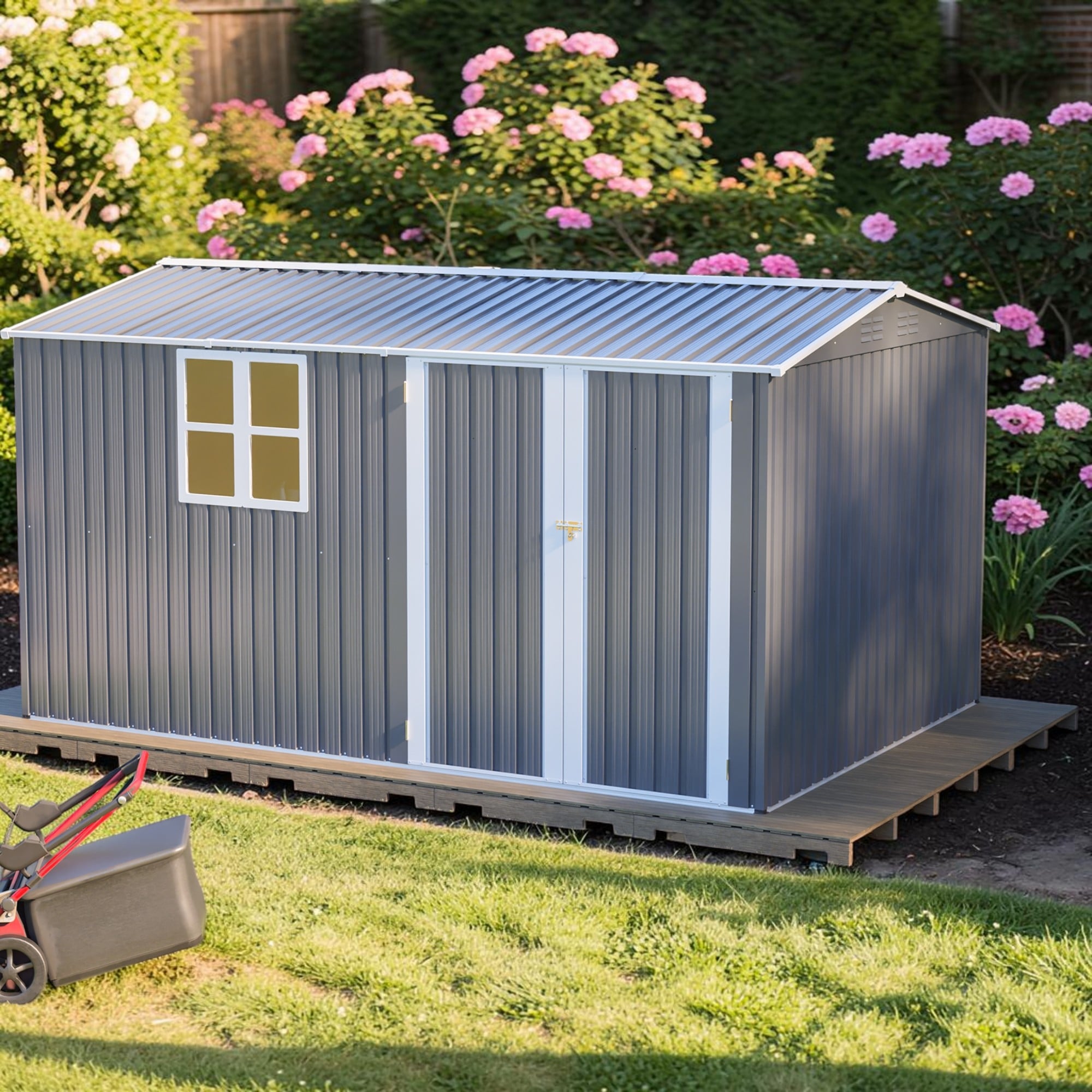 8x12 FT Metal Storage Shed with Window, Outdoor Garden Shed with Hinged Doors and Air Vents Waterproof