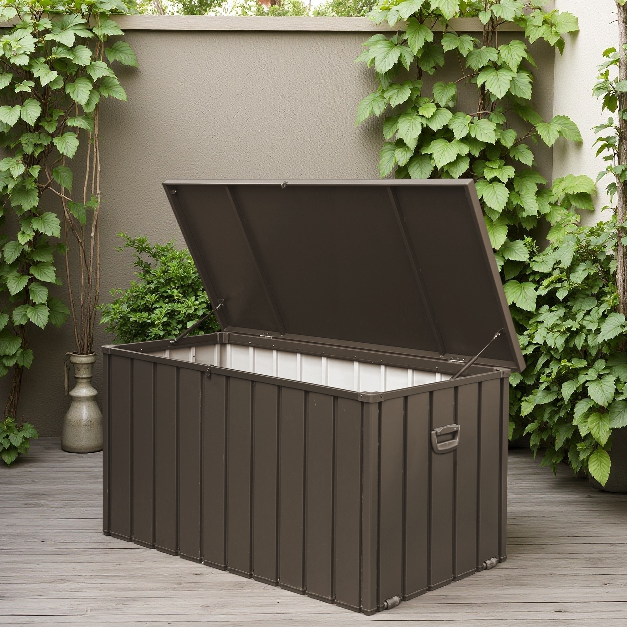 Lockable Outdoor Metal Storage Box with Outside Cushions, Throw Pillows
