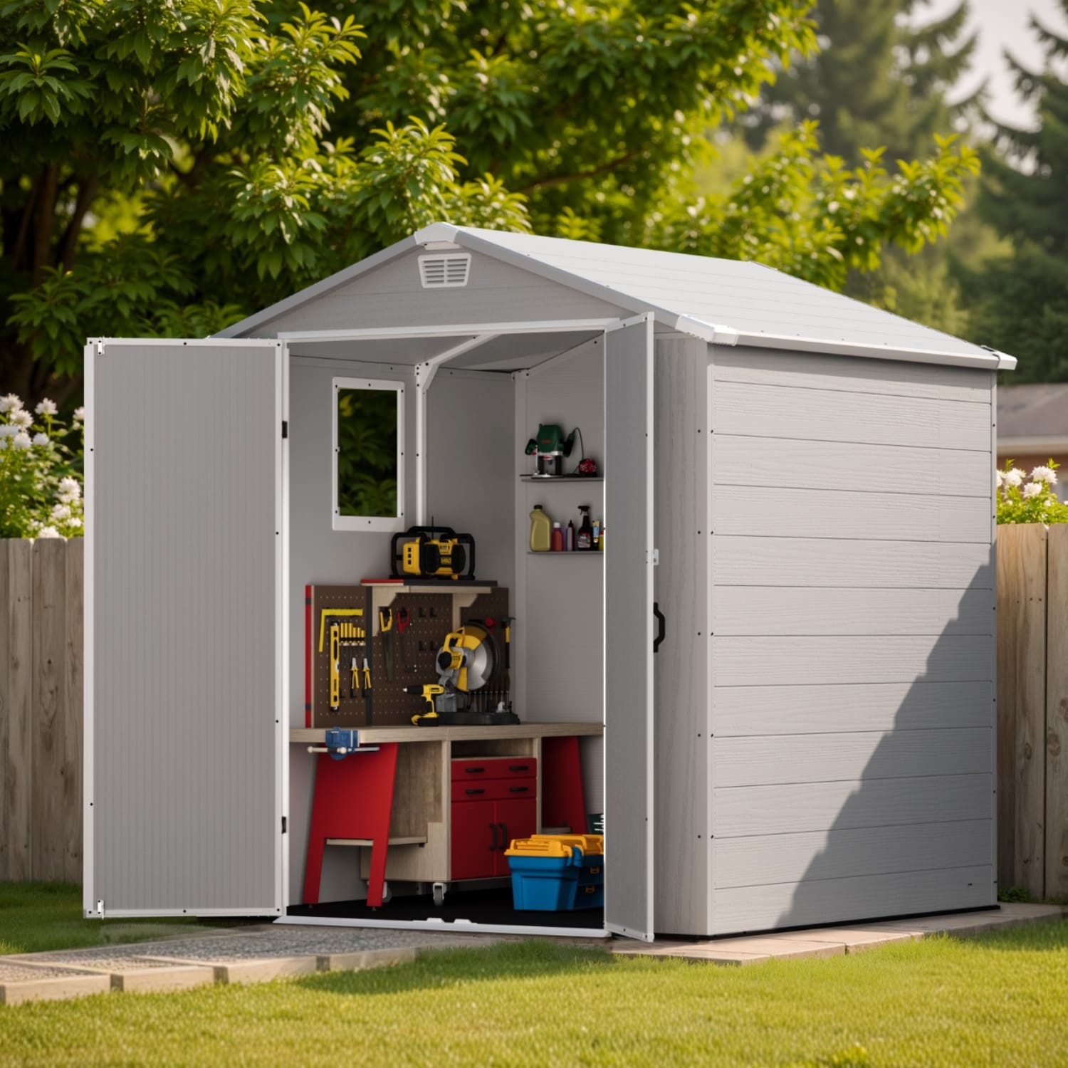 8 ft. W x 6 ft. D Gray Metal Storage Shed with Insulation and UV protection and Lockable Door (48 sq. ft.)