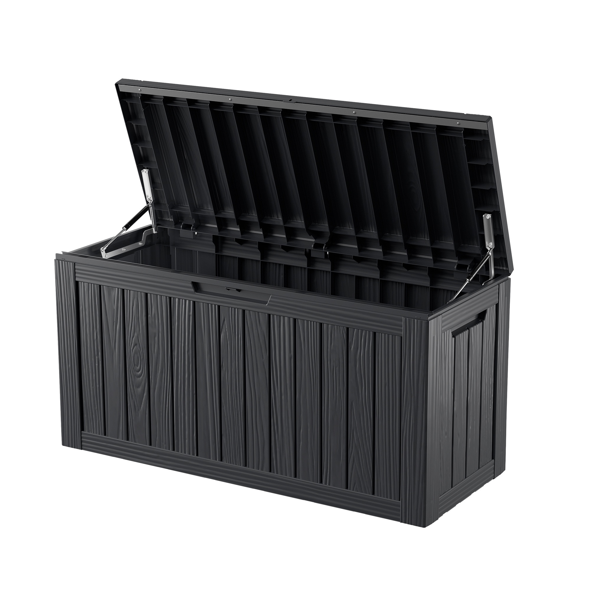 Outdoor Storage Box 85 Gallon Resin Waterproof Deck Box with Wood Texture Large Storage Bin