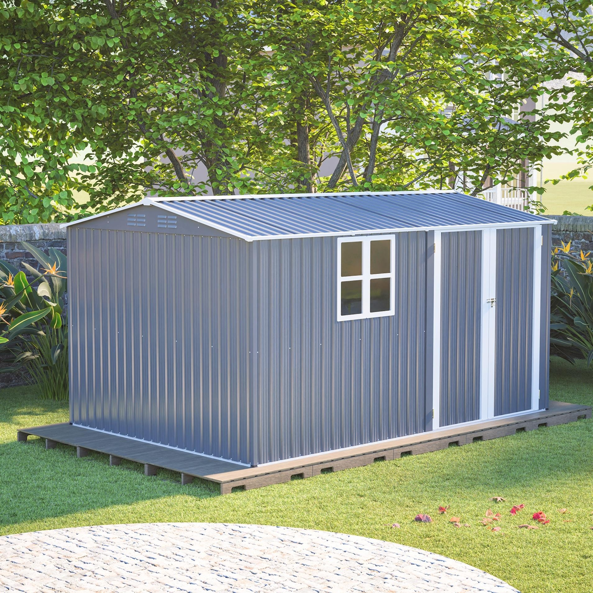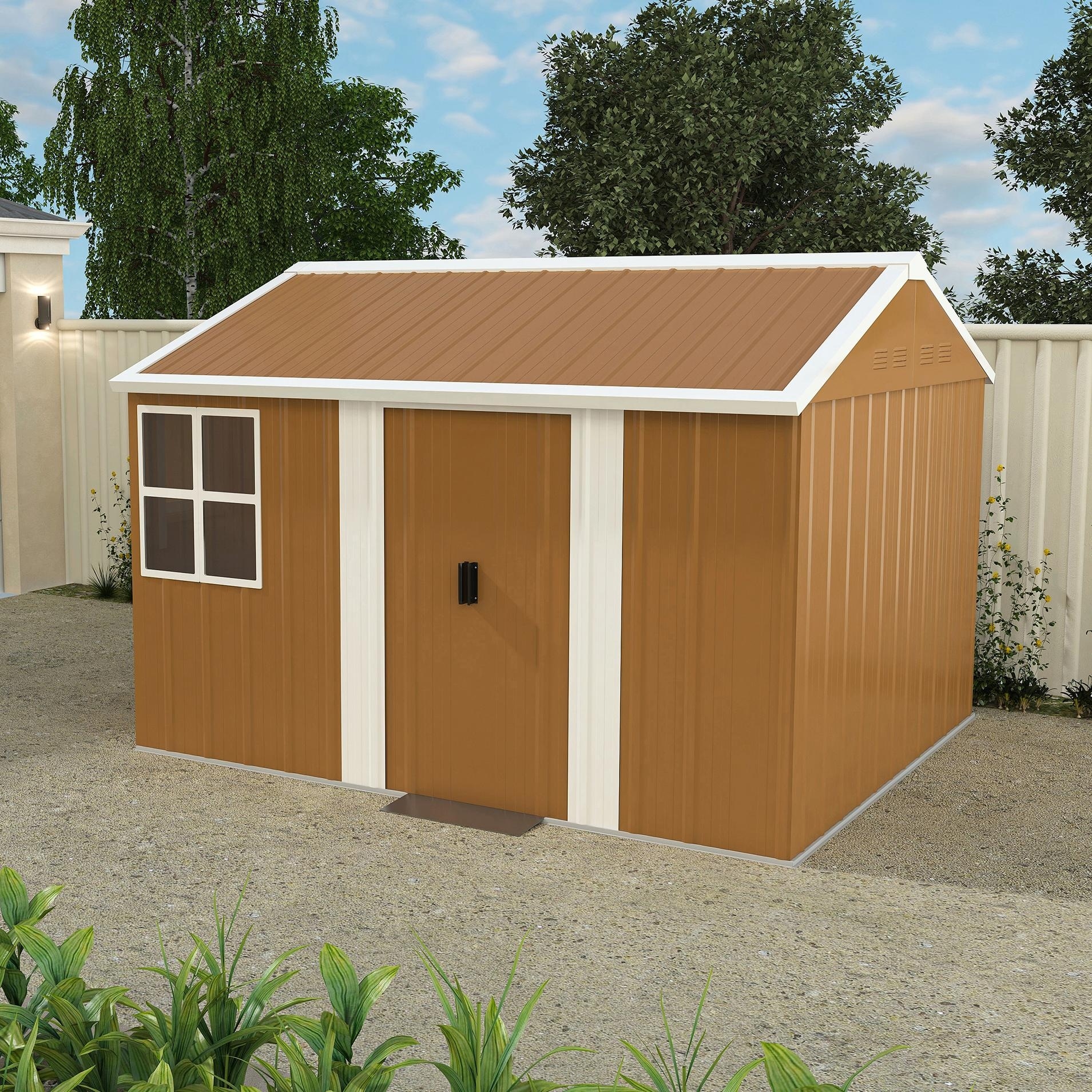 Rust-resistant Steel Storage Shed with Waterproof Panels & Sliding Lockble Door Garden Shed Tool Shed Pet Shed