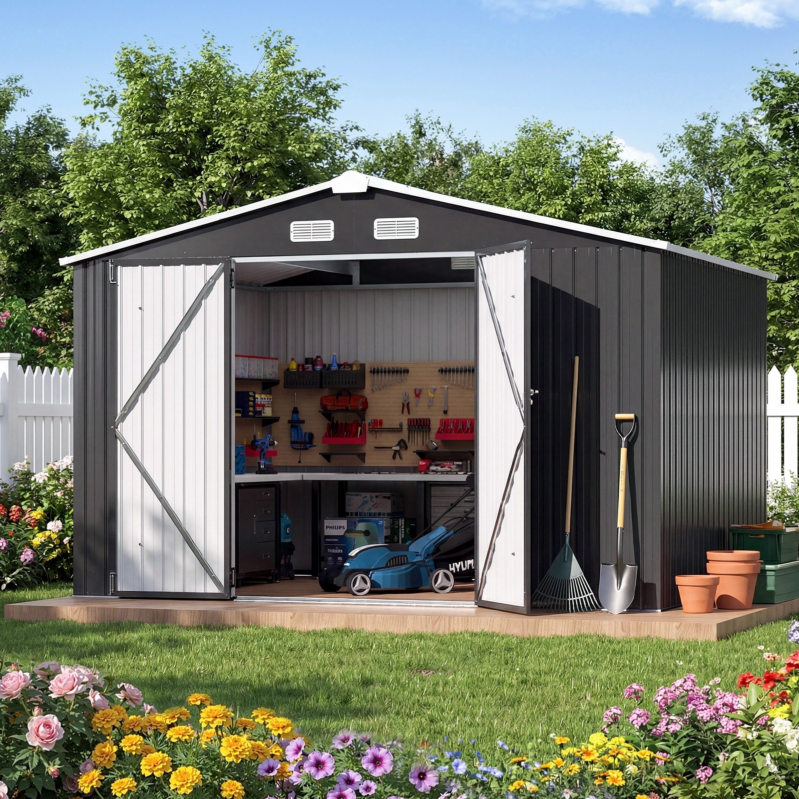 Metal Shed Galvanized Steel Outdoor Storage Shed With Vents