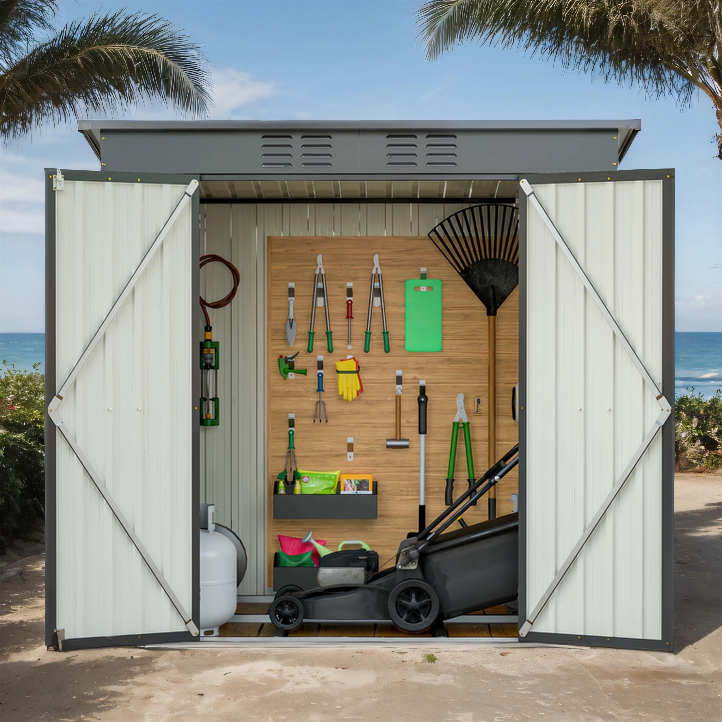 6x4 FT Outdoor Metal Storage Shed with Double Hinged Doors, 68" Height