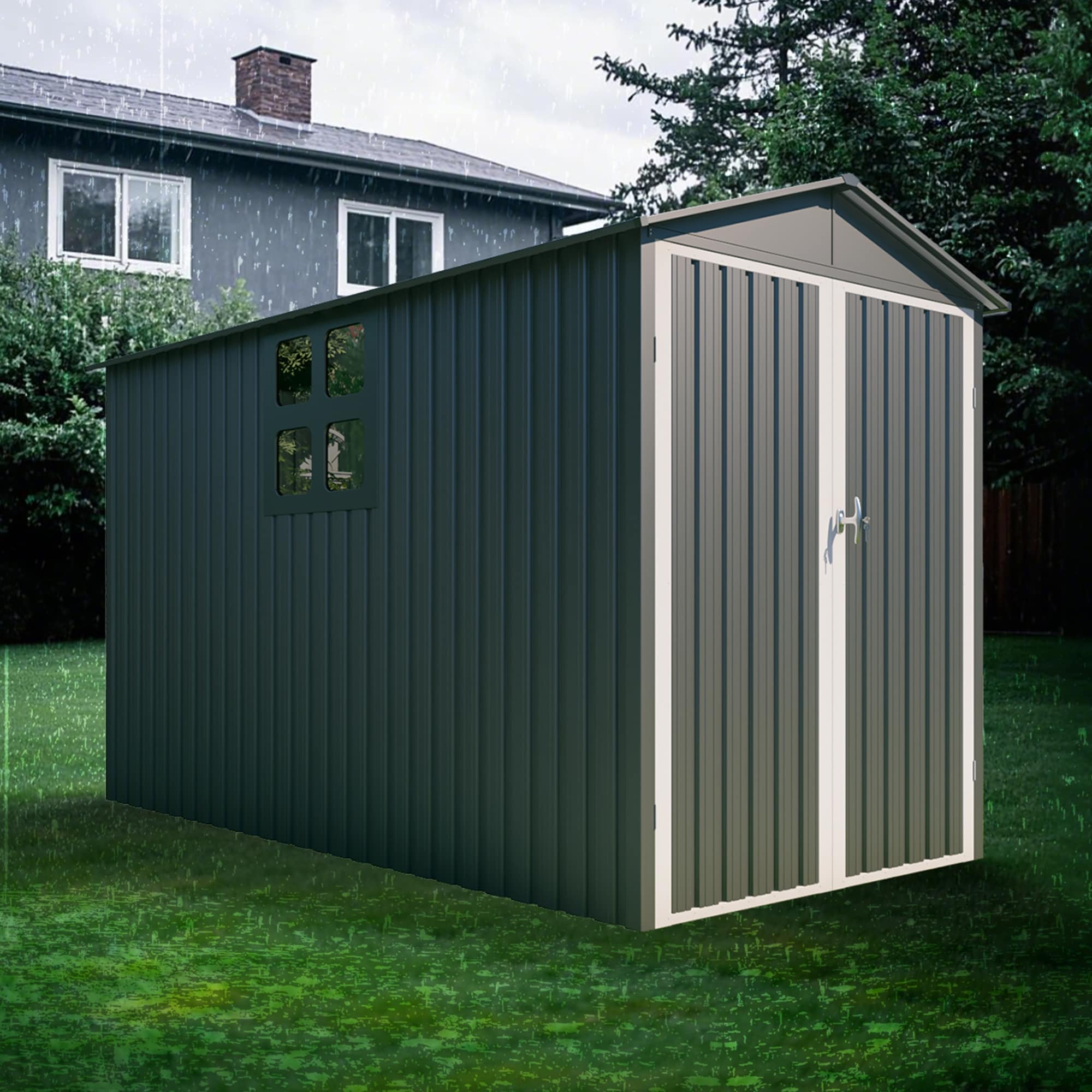 Galvanized Steel Outdoor Storage Shed with Lockable Door, Sloped Roof