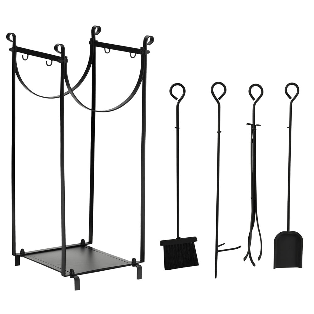 Black Steel Firewood Rack with Tools and Tall Multi-Tier Storage - 14.5" L x 13.75" W x 30.25" H
