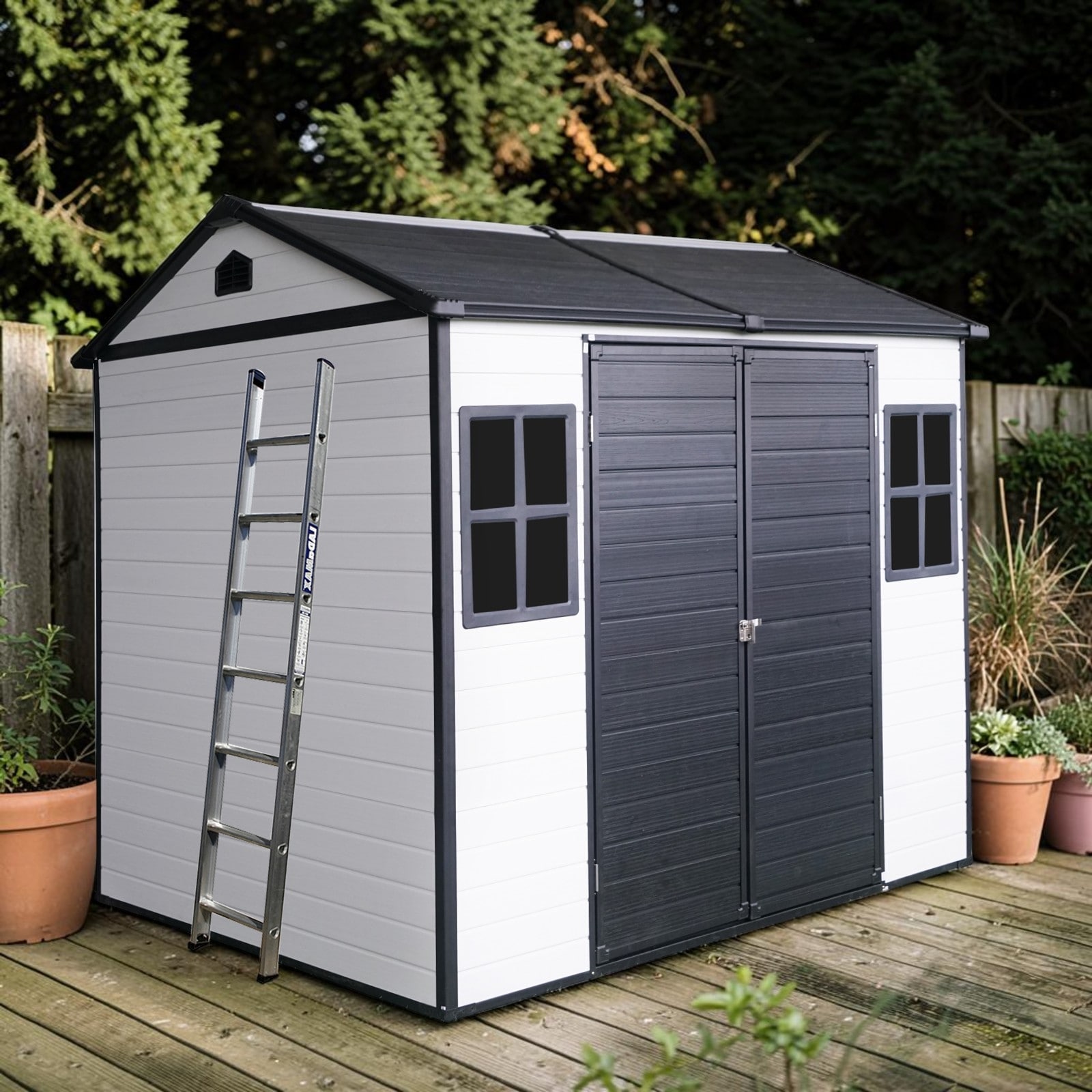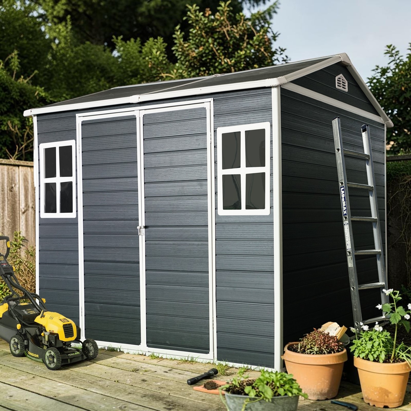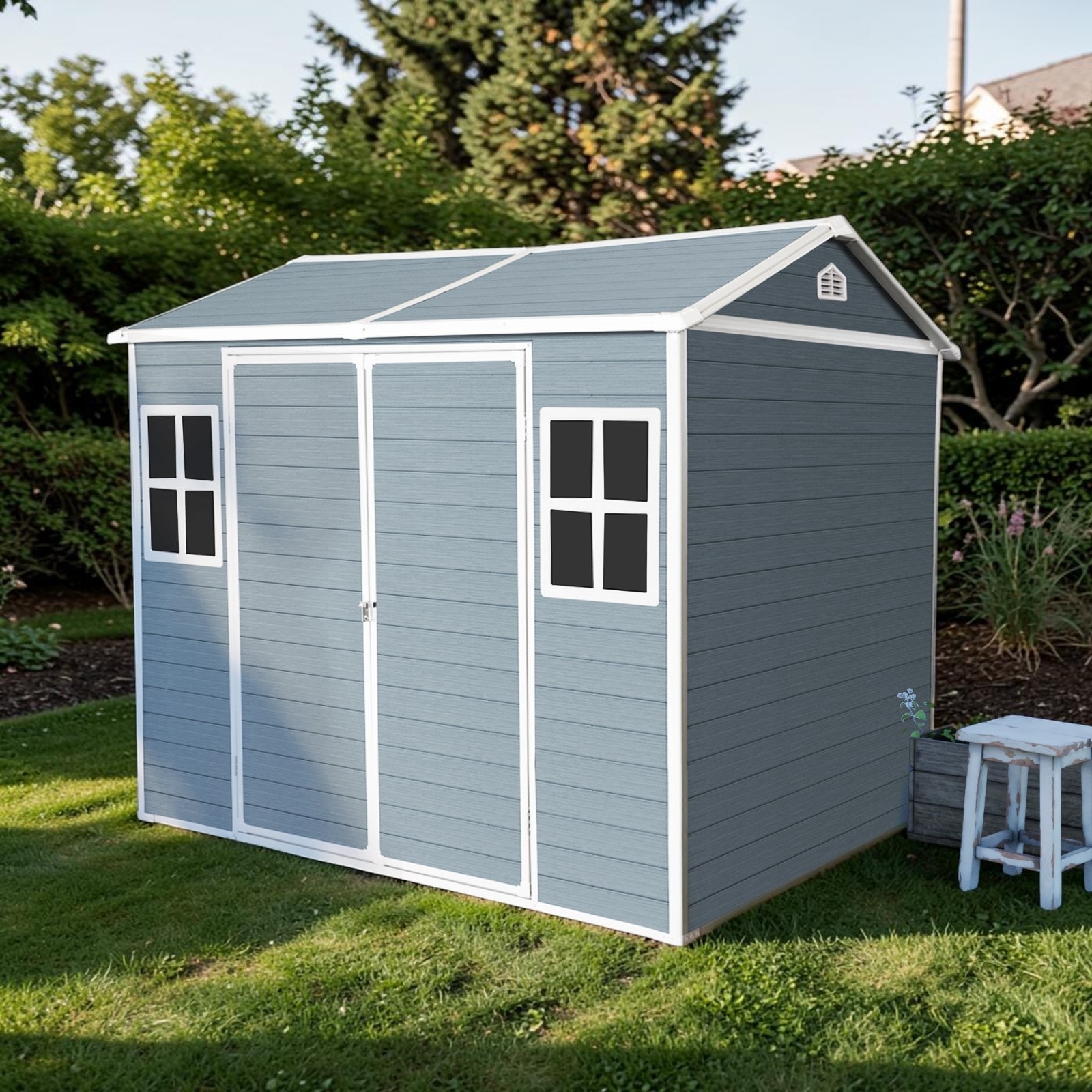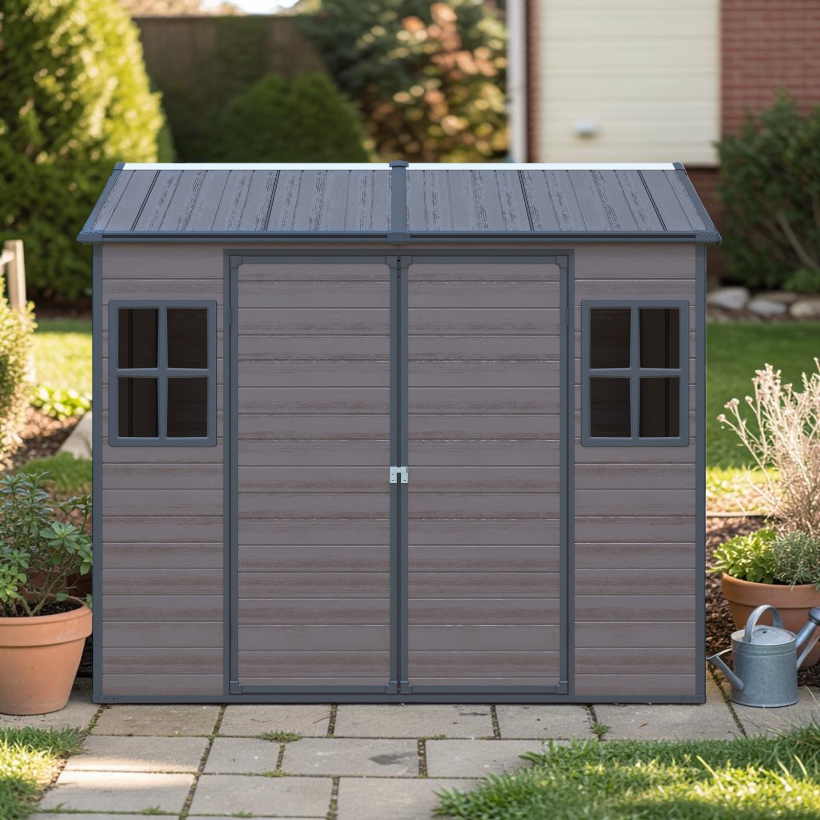 6x8 FT Resin Storage Shed with Floor, Outdoor Waterproof Garden Shed with Windows and Lockable Door