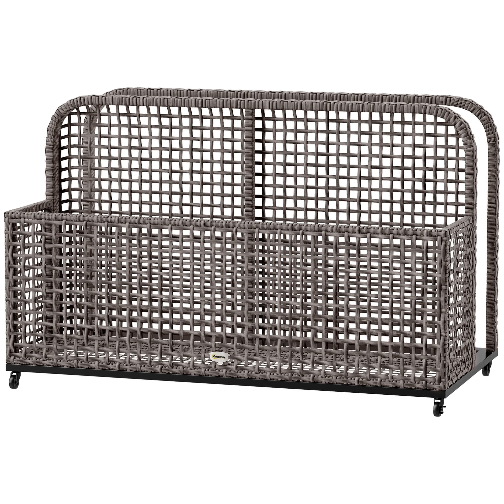 Light Grey Rattan Mobile Two-Section Storage Basket with Steel Frame for Indoor or Outdoor - 43.25" L x 22.5" W x 28" H