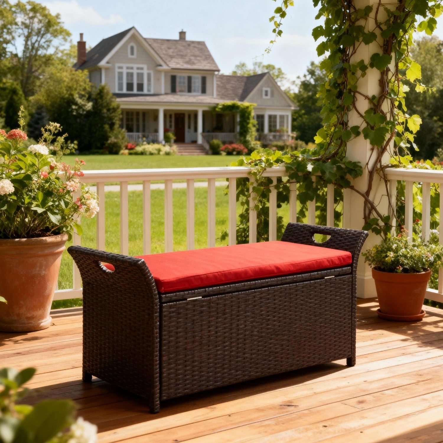 Outdoor Storage Bench Rattan Style Deck Box w/Cushion