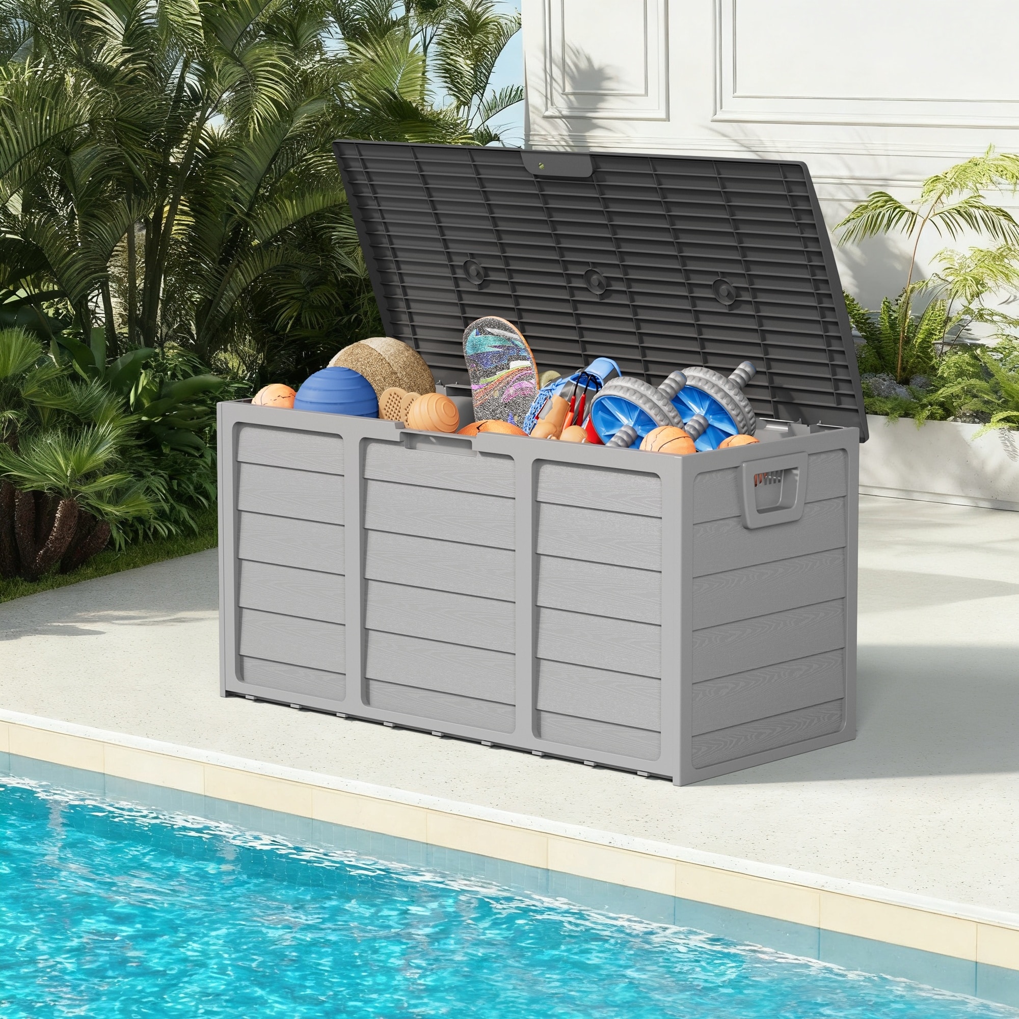 75 Gallon Outdoor Storage Deck Box Resin Container with Handles for Patio Garden Yard Porch Poolside