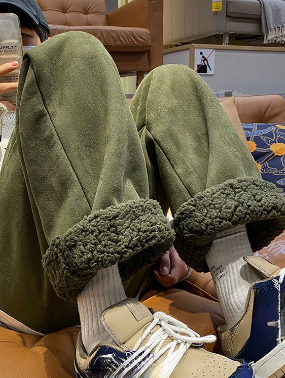 Winter Fashion, Womens Thickened Trousers, Straight Leg Pants, Casual Wide Leg Style, Autumn Winter beige s