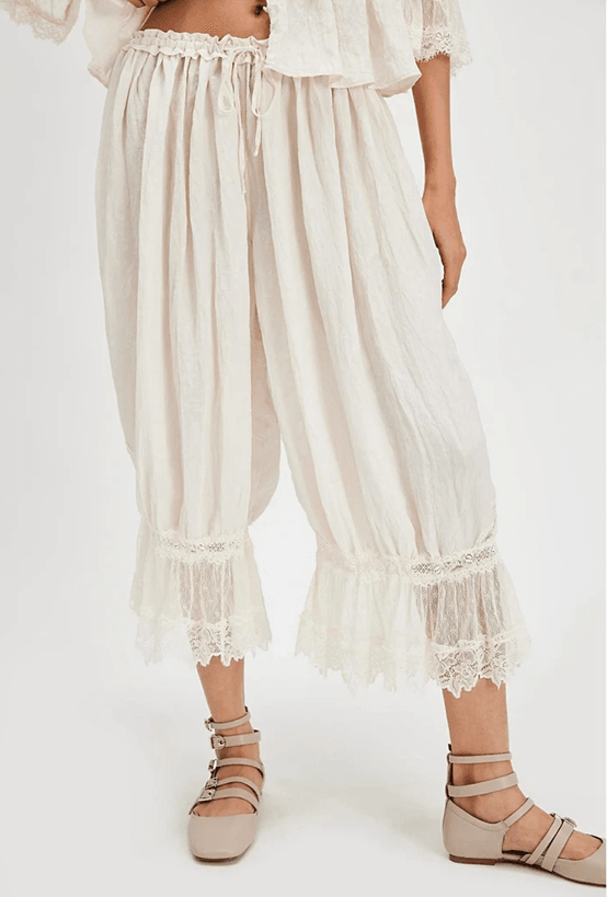 BloomEase Womens Y2K Loose Fit Cropped Pants With Lace Patchwork s light Blue