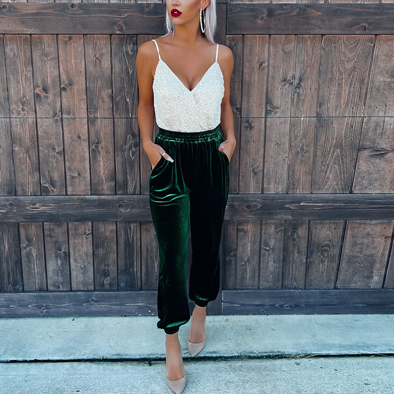 Elegant Red Velvet High Waist Pants For Women black s