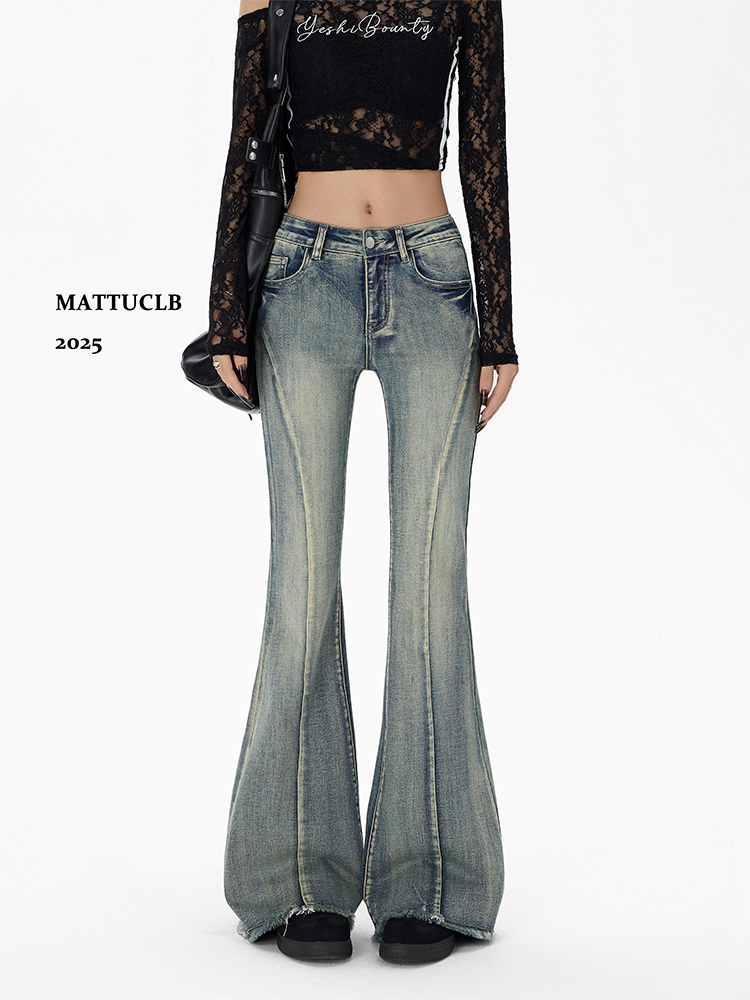 Autumn Winter Gyaru Denim Flare Pants For Women Bootcut Jean Y2K Harajuku Baggy Stacked Low Rise Bell Bottom Japanese blue xs