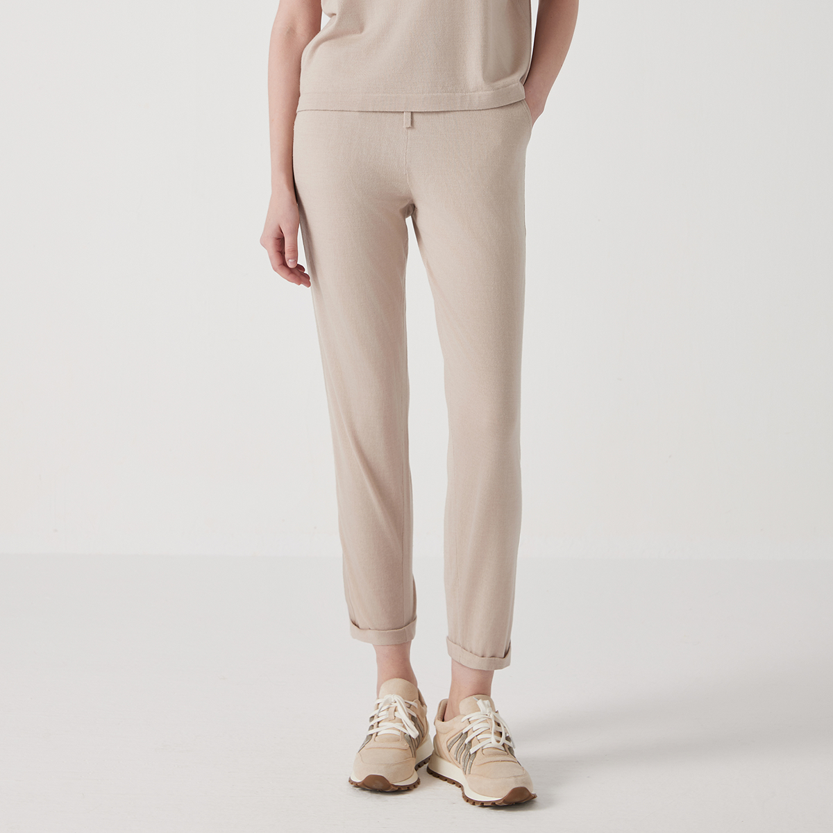 High Quality Silk Blend Merino Wool Long Trousers For Women Luxury 30% Silk 70% Wool Pants Soft Feel Premium Wear dark Gray m