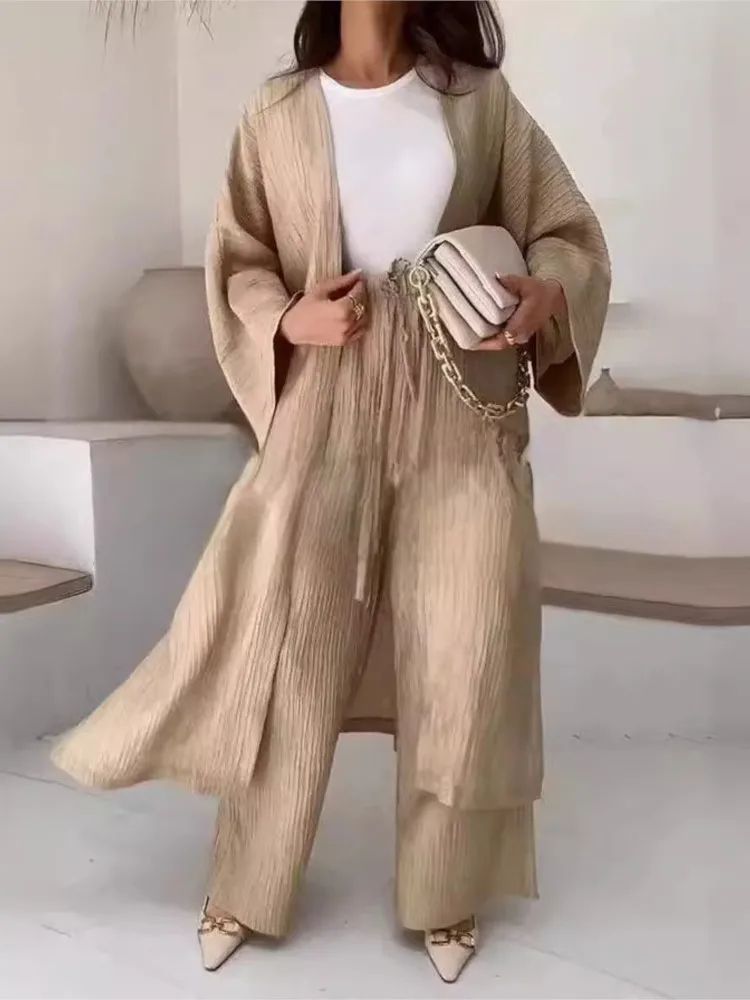 Women's Solid Color Long Cardigan & Wide Leg Pants Set Casual Loose Commuter 2 Piece Outfit green 8 10