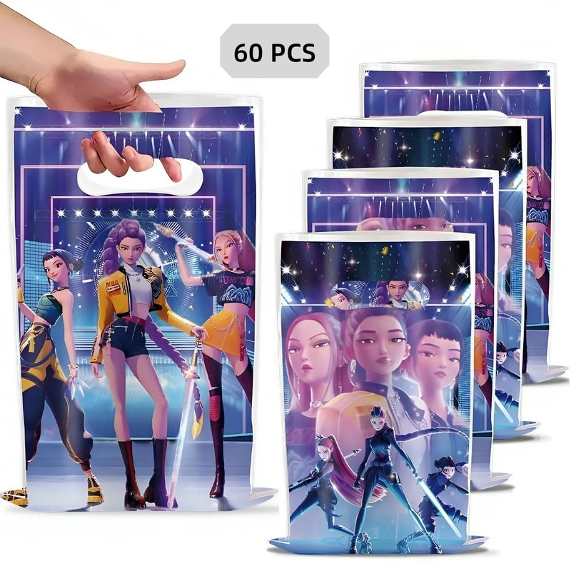 60 Pcs KPop Demon Hunters Party Gift Bags, Plastic Party Favor Small Goodie Bags