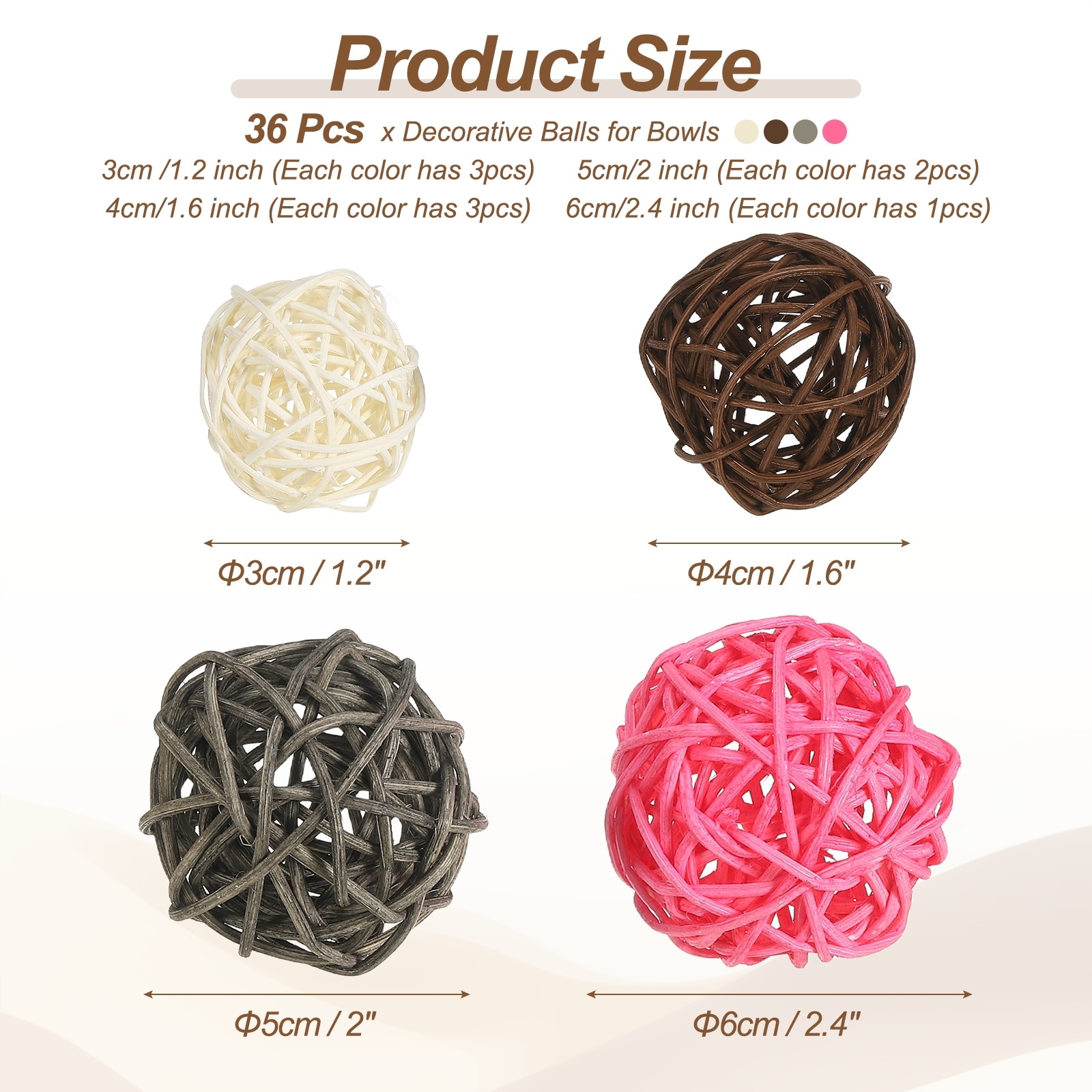 Wicker Rattan Balls, Decorative Balls for Centerpiece Bowls Home Decor - 3/4/5/6cm