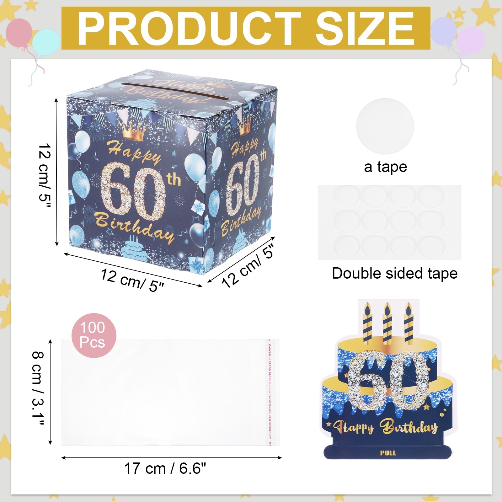 Birthday Money Box for Cash Gift, Birthday Money Pull Box with 100pcs Transparent Bags for Birthday Card Party Decorations