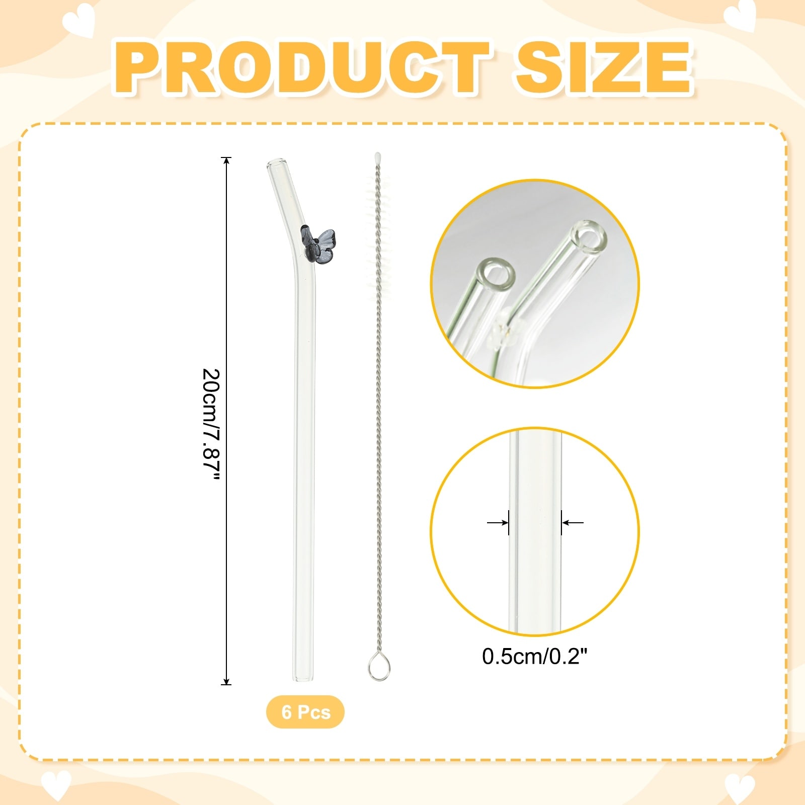 8 Pcs Reusable Glass Straws, 7.87" Butterfly Straw, Multicolored/Transparent