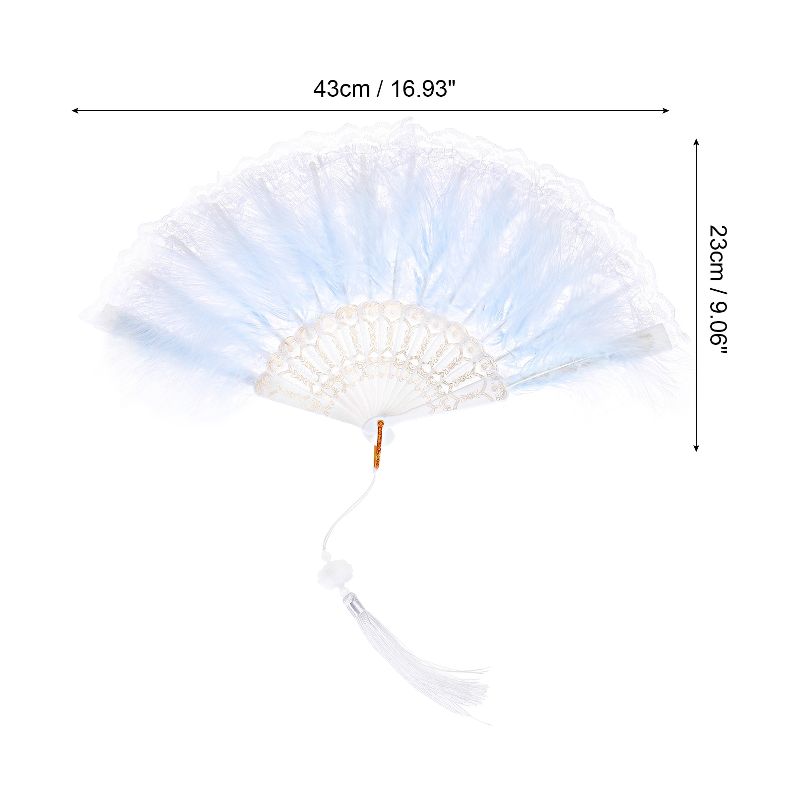 Feather Hand Fan Vintage Folding Fan with Tassels Feather Fan Handheld for Halloween Party Wedding Dancing Decoration, - 23cm