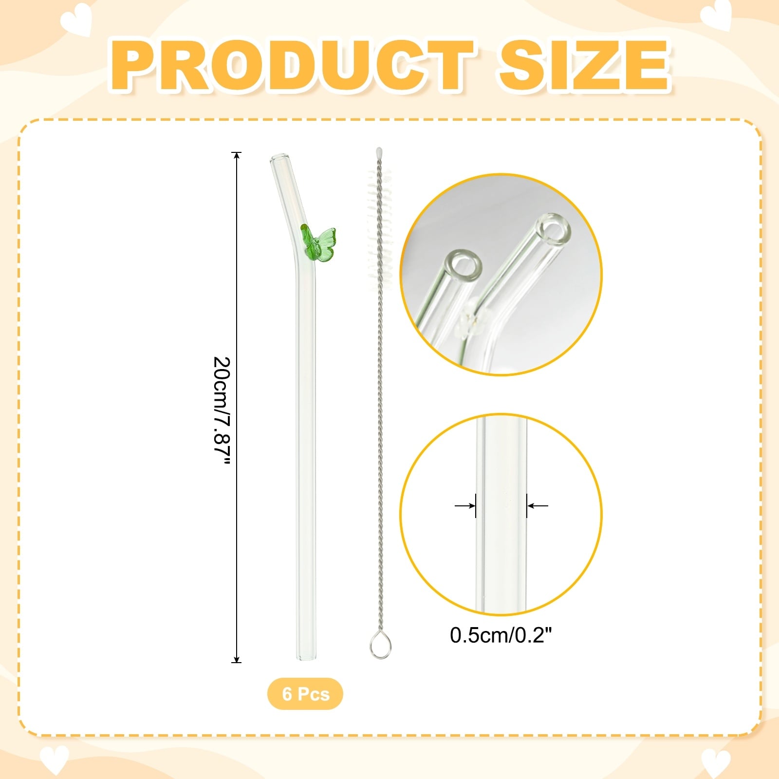 8 Pcs Reusable Glass Straws, 7.87" Butterfly Straw, Multicolored/Transparent