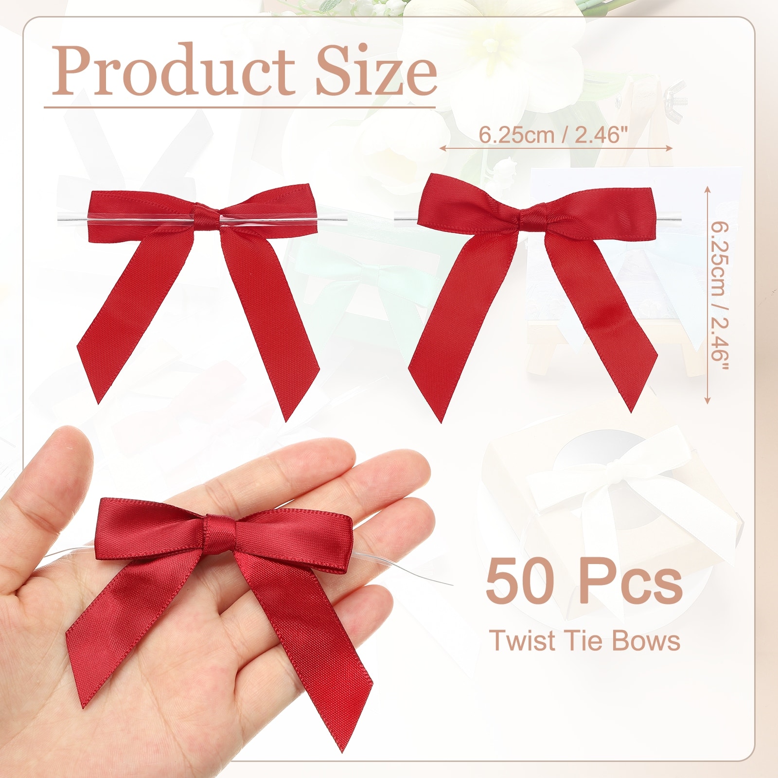 Twist Tie Bows, Premade Satin Ribbon Bow for Crafts Candy Treat Bags Cake Gift Wrapping Wedding Birthday Party Decorations