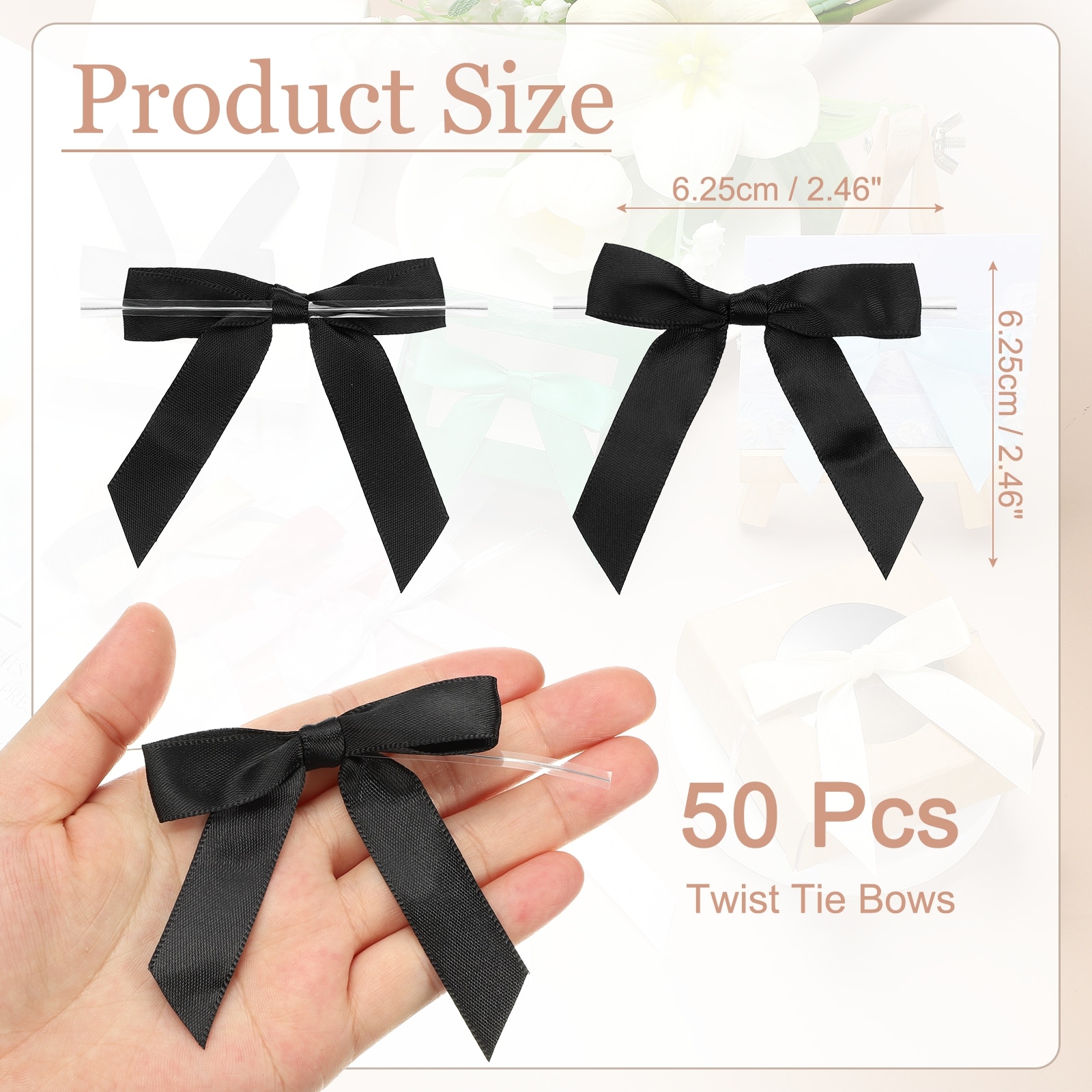 Twist Tie Bows, Premade Satin Ribbon Bow for Crafts Candy Treat Bags Cake Gift Wrapping Wedding Birthday Party Decorations