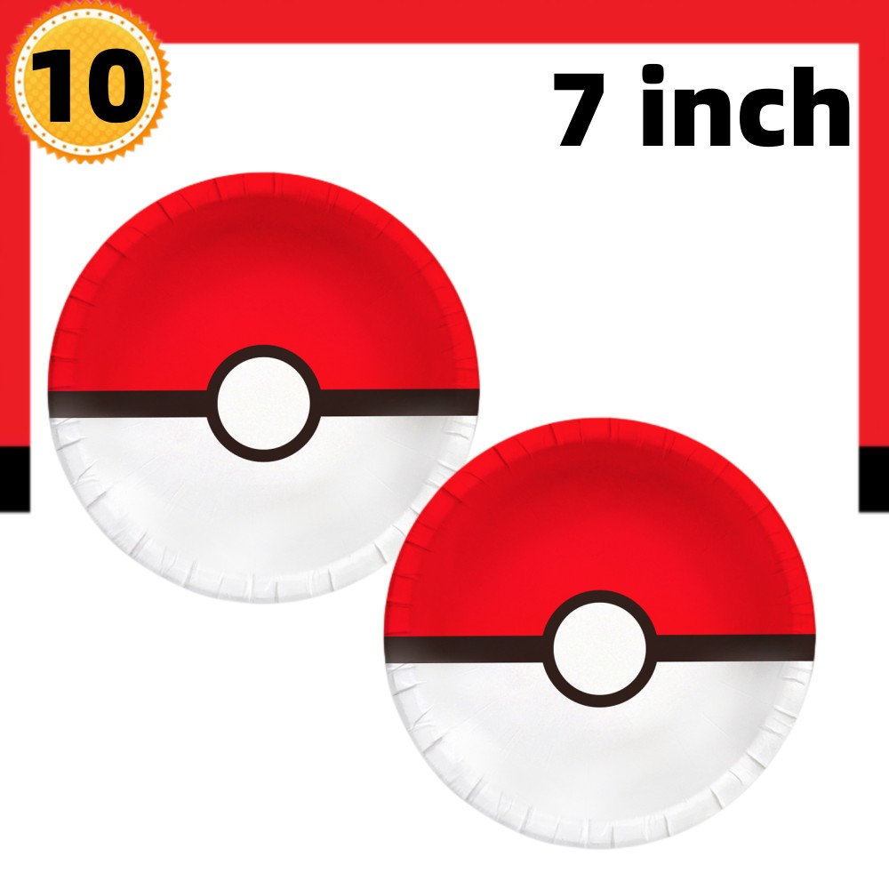 Pokeball Foil Balloons & Disposable Tableware: Pokemon Birthday Party Decorations For Boys Color: Plates 7inch 10Pcs
