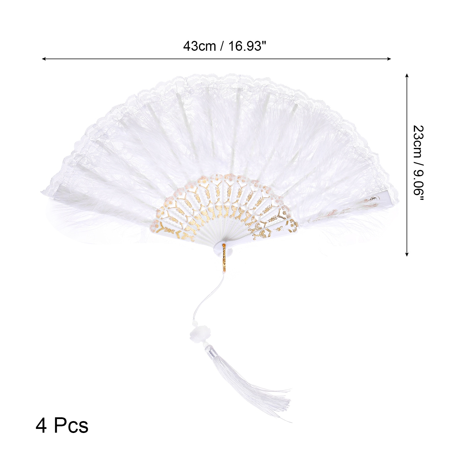 Feather Hand Fan ,Vintage Folding Fan with Tassels Feather Fan Handheld for Halloween Party Wedding Dancing Decoration - 23cm
