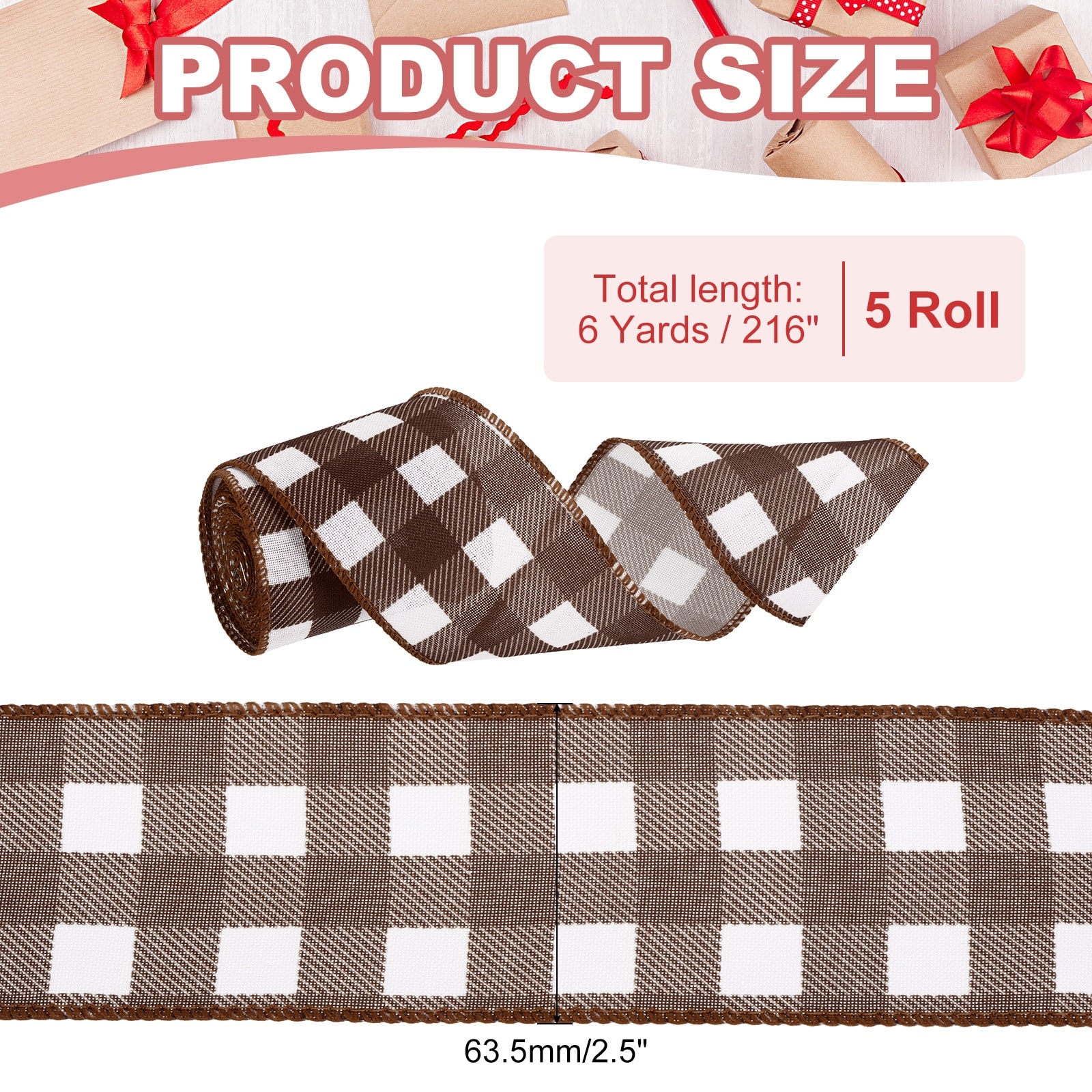 Plaid Check Ribbon, Wired Edge Gingham Ribbon for Gift Wrapping, Christmas Decoration