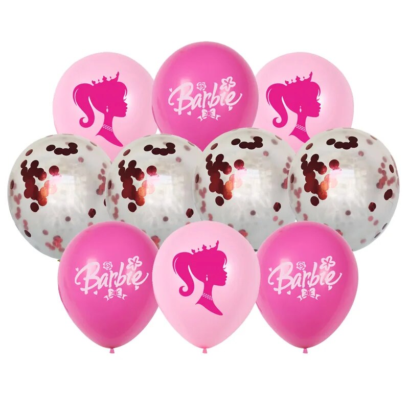 10pcs Girl Pattern Printed Balloon Pink Latex Balloons For Barbie Theme Party Decoration 12inch 5