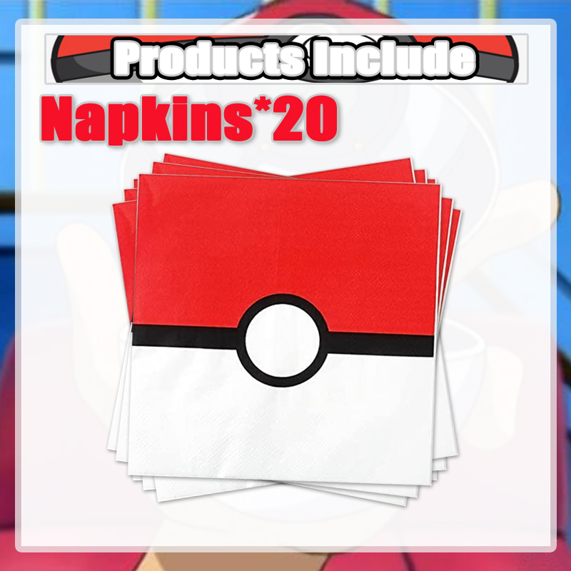Pokeball Tablecloth: Pikachu Party Supplies, Free Shipping Baby Shower, Birthday Decor Color: Napkins 20pcs