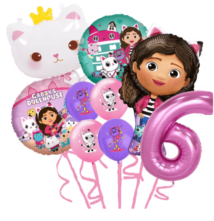 Gabby Dollhouse Cats Number Balloon Set: Perfect Children's Birthday Party Decoration With Latex Aluminum Balloons Gir Color: 9Pcs Balloon 6 Pink