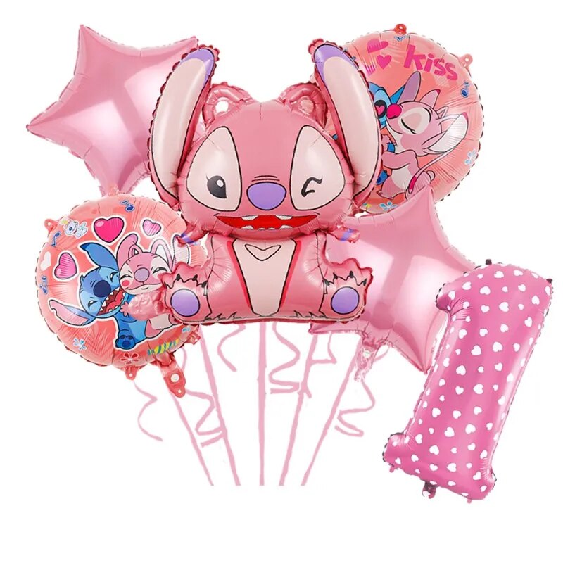 Lilo & Stitch Pink Foil Balloon: Perfect Decor For Boy Girl Birthday & Baby Shower! 6pcs Number 1