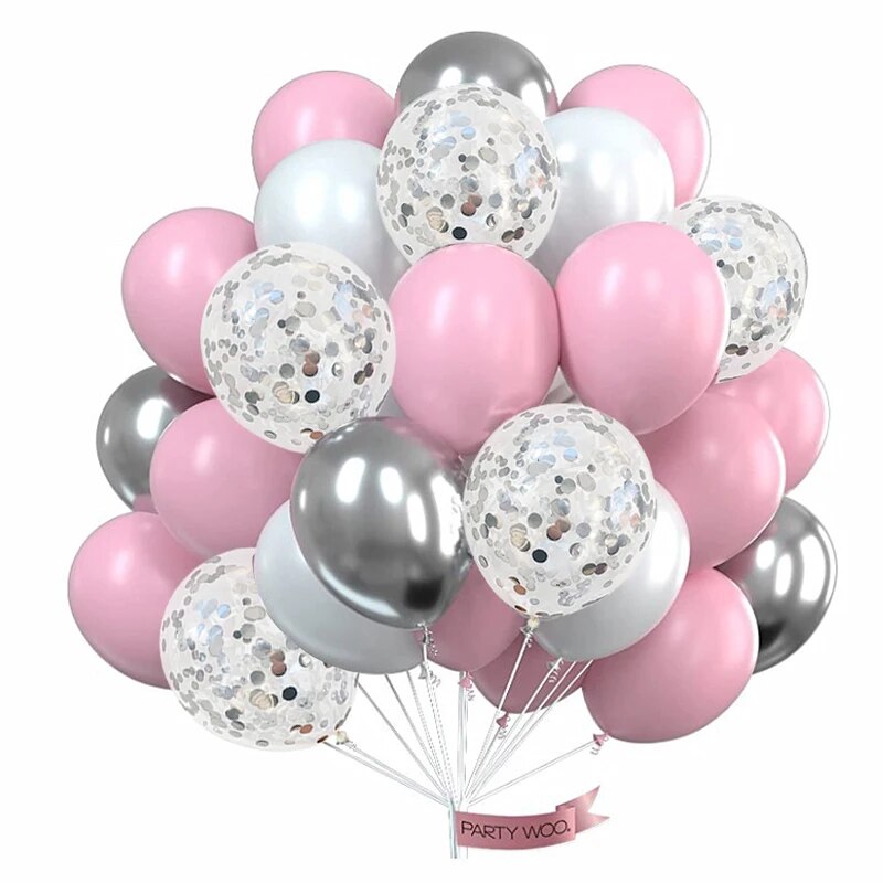 30pcs Clear Latex Confetti Balloons For Wedding, Baby Shower, Birthday & Valentine's Day Decor pinksliver 12inch